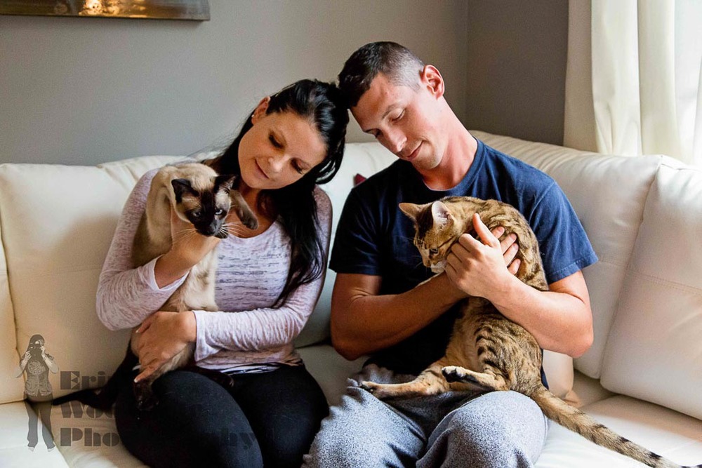 When I introduce myself to people as a wedding and pet photographer a lot of times they will joke about only having a cat and could I take photos of that and here’s proof that I definitely love doing that too! Especially when they are as gorgeous as these two! As you can see we did an in home session with the cats, then went to a park for some fun with their awesome Doberman!