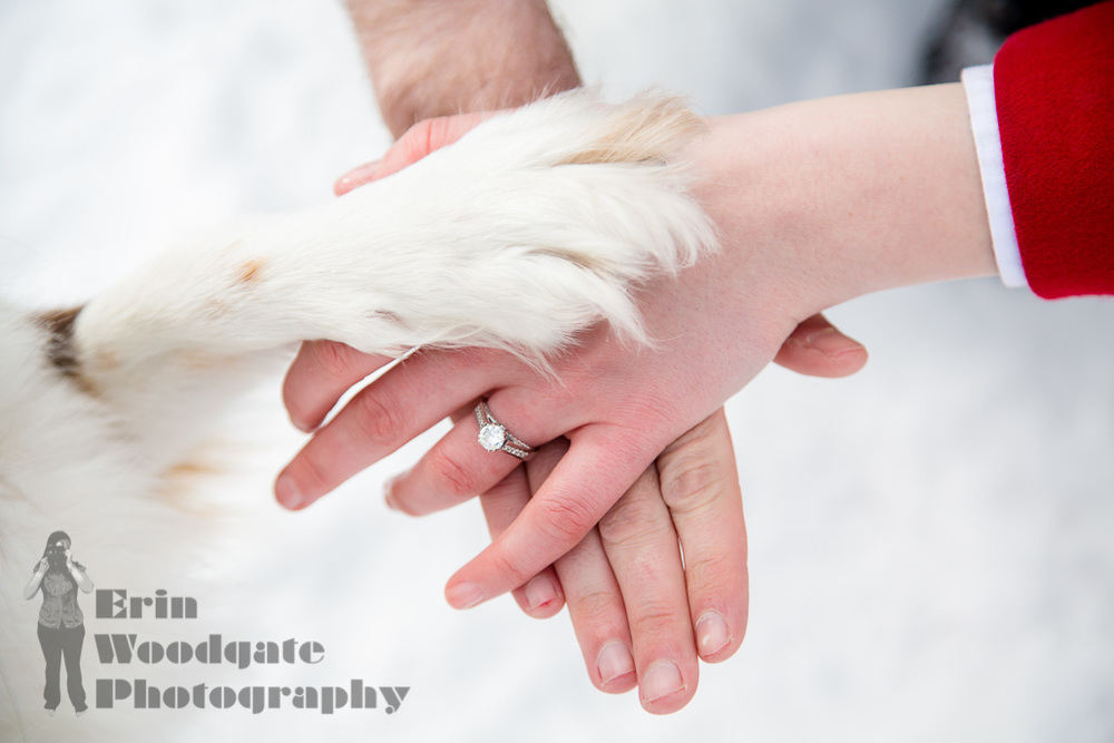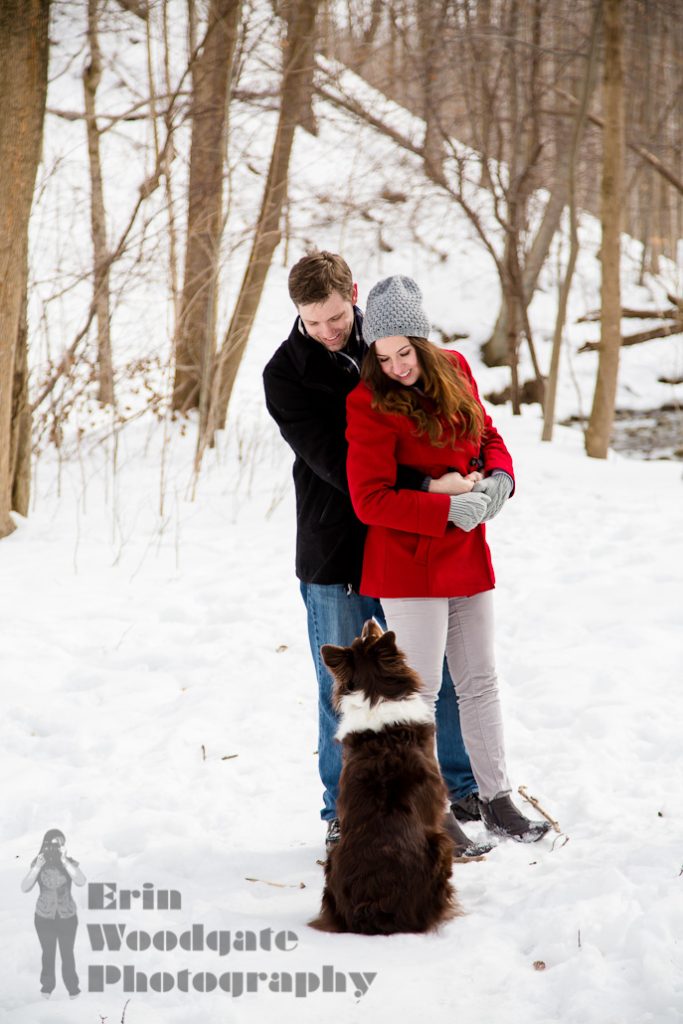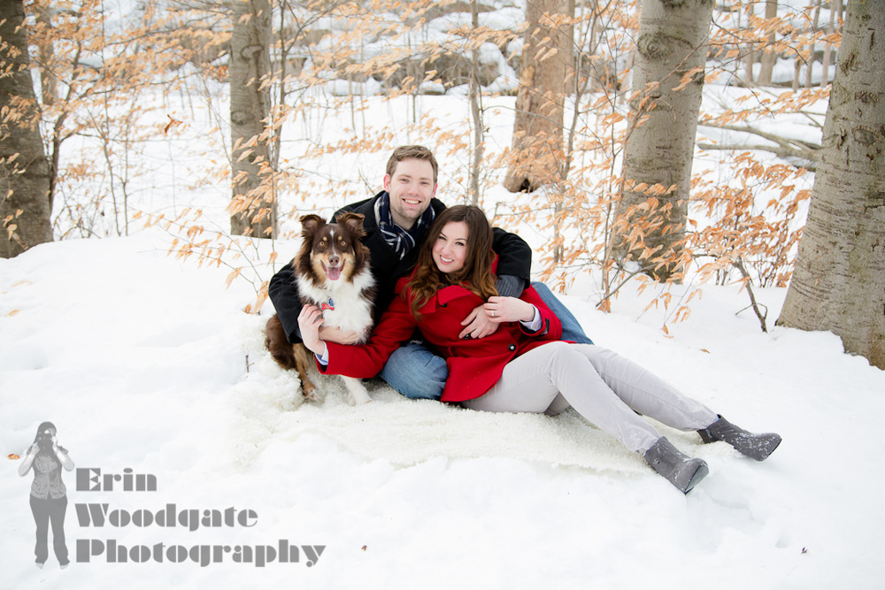 I mentioned last week in my reasons why having an engagement session is a good idea posts that winter engagement sessions are some of my favourite. This was certainly no exception, her gogeous bright red coat for a pop of colour amongst the monotone landscape and one of the most well behaved dogs I’ve ever photographed.