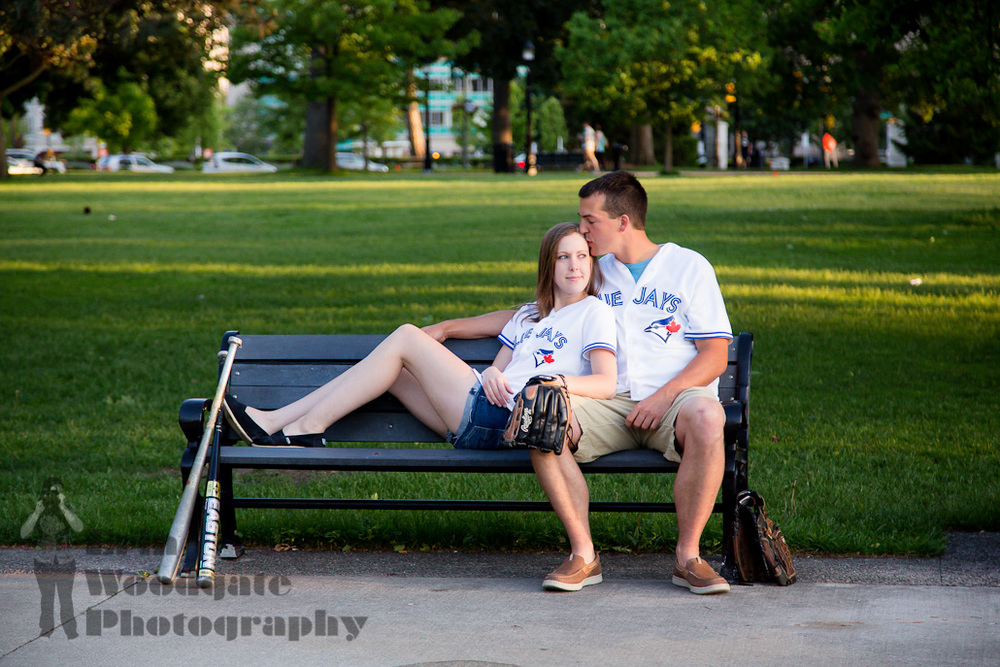Engagement sessions when there is a shared hobby that the couple want to incorporate into the session. We started this session at Williams coffee shop on Richmond street because Becky and Nathan had their first date in a coffee shop then we headed out into Victoria Park for some baseball themed fun and then towards the end changed outfits and grabbed some shots in the gorgeous golden sunset light.
