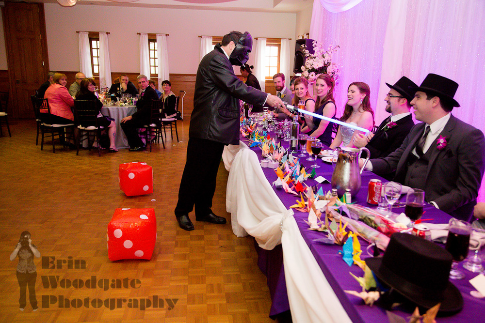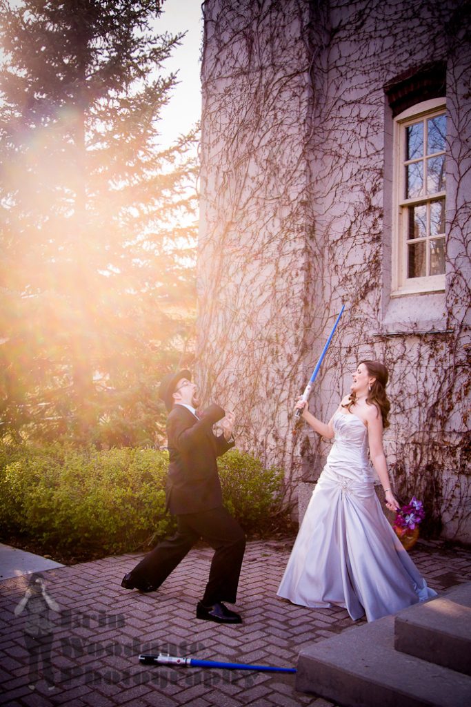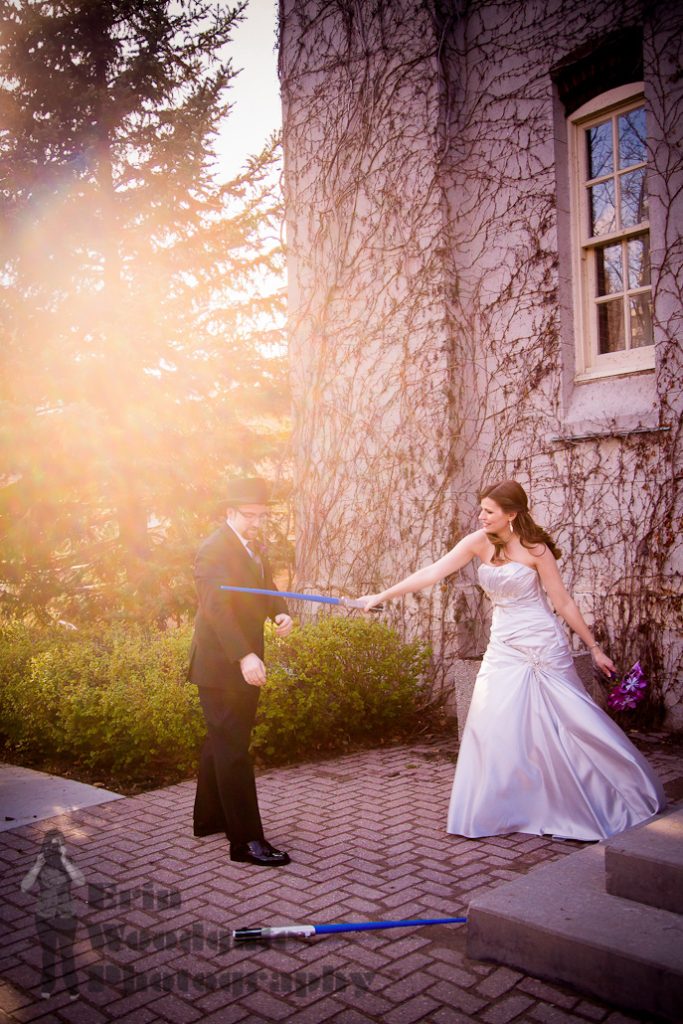 The Old Court House in London, Ontario made for a beautiful backdrop for Steph and Adam’s wedding on May 3rd last year. They picked the date as they are big fans of Star Wars and planned a lightsaber duel at midnight when the clock ticked over to May the 4th (be with you). Check out all the amazing details from her paper boquet to the scientific experiement instead of sand ceremony! There’s a lot of photos in this post so I’ll let you get to it but make sure you stick around until the end of the post for the lightsaber duel!
