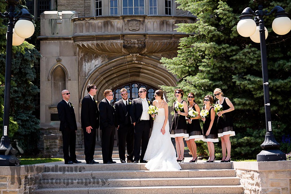After their really fun engagement session I knew that Michelle & Ben’s wedding would be amazing to photograph. Michelle was surrounded by her family and best friends getting ready in a gorgeous heritage home. The ceremony at St Peters Cathedral happened to be on the anniversary of the dedication of the cathedral and it really is the most amazing place in my opinion for a religious ceremony in London. After doing their photography on the grounds on Western University we did a shot re-creating how they met with him serving her and thier cousins a shot at The Spoke. The reception at The Wave was my first photographed there and it really blew me away with how nicely decorated and how yummy the food was! After some emotional speeches they shared their first dance and partied the night away!