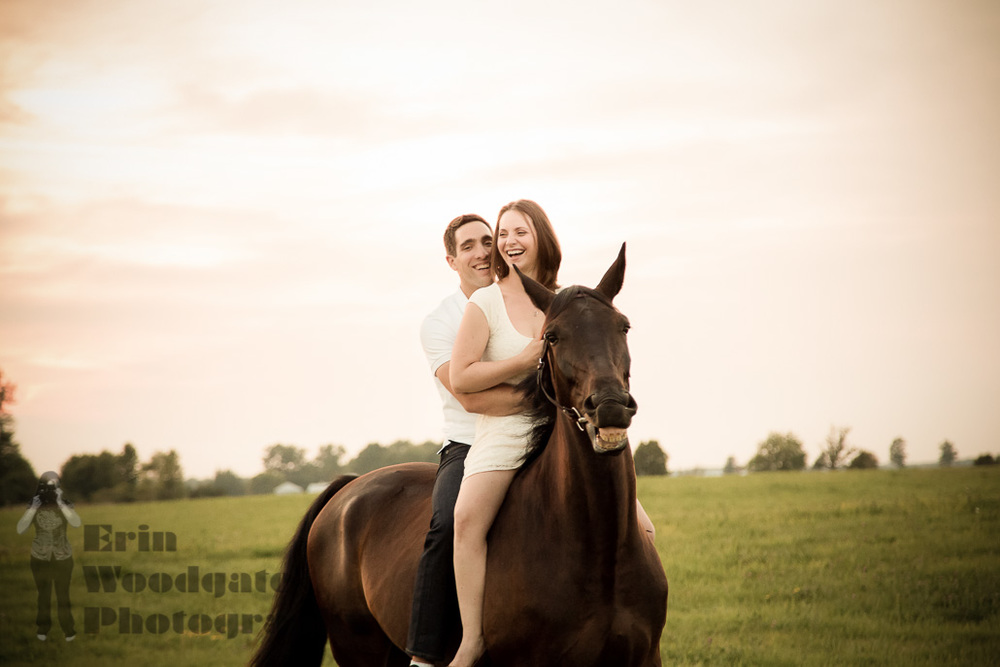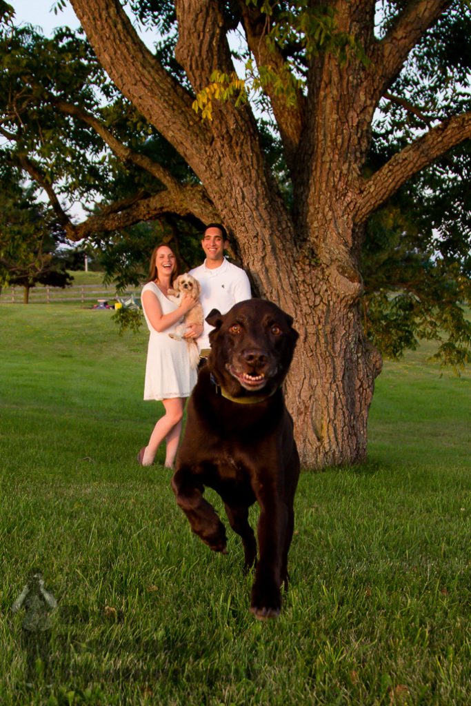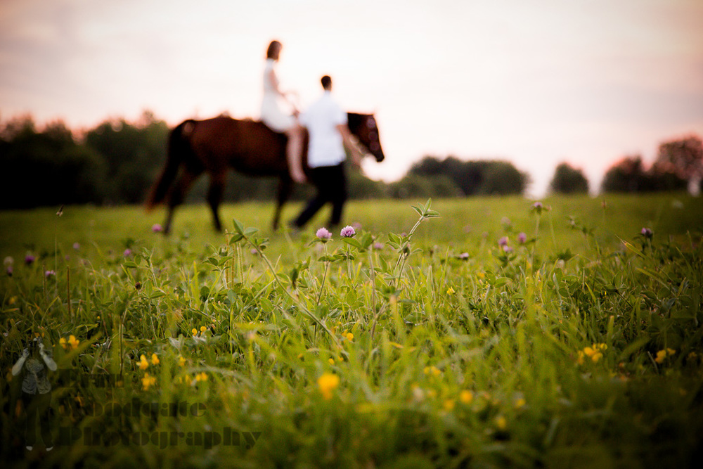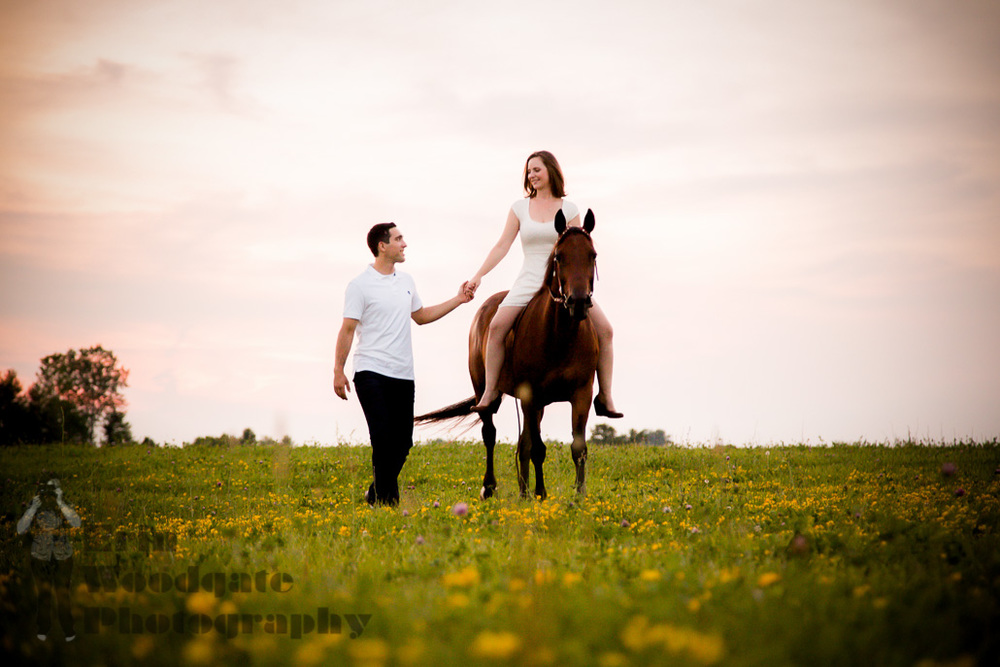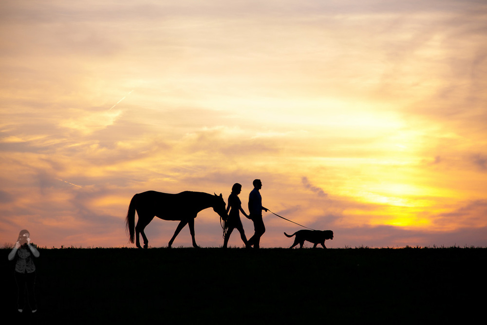 As I just shot Meaghan and Michael’s wedding on the weekend, I thought it was about time I blog their engagement session. When we first met and they described an image they had seen of a silhoette of a horse and dog that they wanted to re-create I was beyond excited! After rescheduling because of an overcast day, we happened to get an amazing sunset so I was very happy to be able to get that image to be great for them, but also had a lot of fun taking shots inspired by the rustic surroundings and also including the dogs and horses on Meaghan’s family farm. I just love the fun shots of the chocolate lab running towards the camera with a massive smile on his face and the shot of the horse ‘smiling’ with both of them laughing.