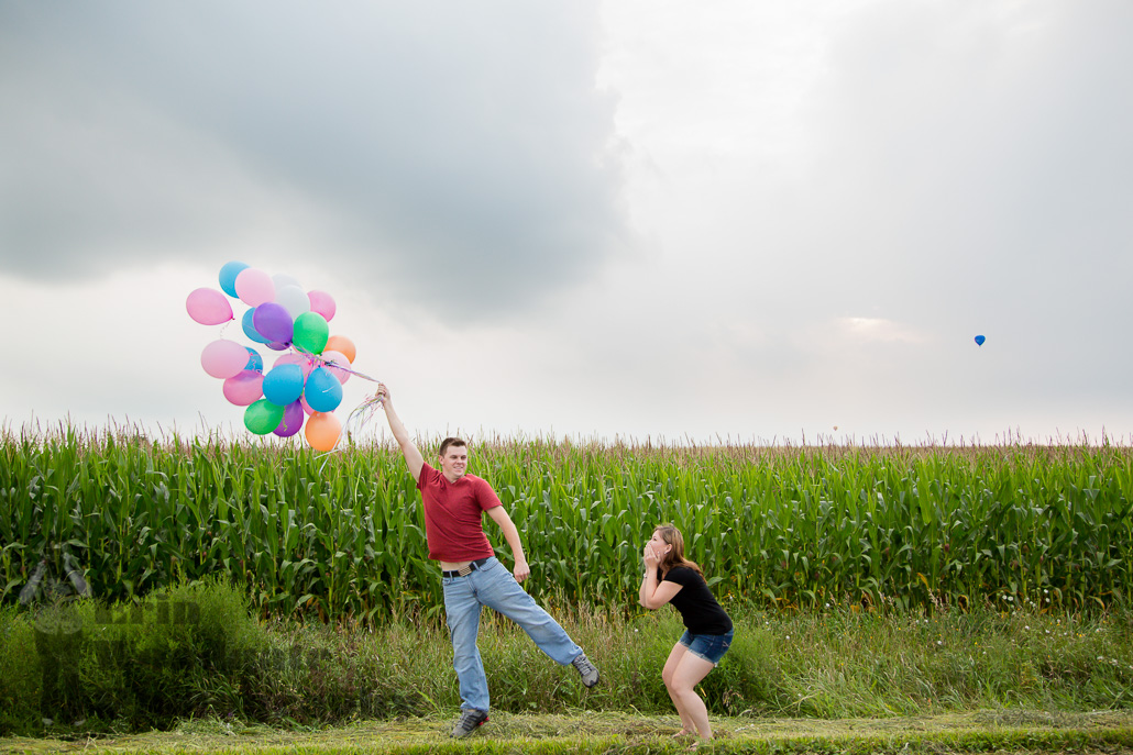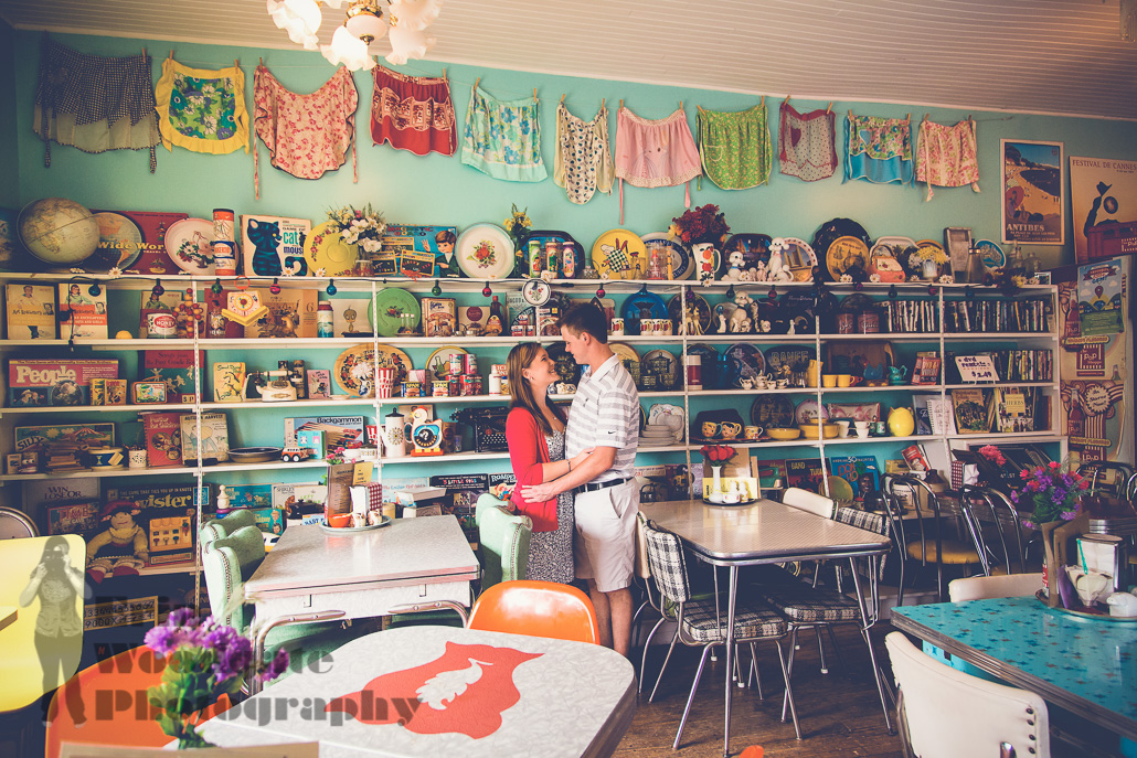 When Annie and Ryan and I had our first consultation we bonded on our love of Disney movies and when it came time to pick a location for the engagement photos they had the one location of the dairy farm that Ryan worked at in mind, but as they had a 2 hour session there was time for another location, I suggested the awesomely retro The Bag Lady Deli. Everything else from there just totally fell into place, from the Disney platter that The bag lady had on display that we used in the photos, to the collection of kitchy dogs (they are big dog lovers), to the game of Pictonary that they wanted to include as they love playing board games and then the very first card they picked up had a marriage reference. After a change of clothes and location we headed to the dairy farm and brought in more of a Beauty and the beast (Annie’s favourite Disney movie) theme with the rose and then brought in the balloons for an UP! theme, which were a lot of fun and also, when the hot air balloons appeared it was just perfect! Looking forward to shooting this gorgeous couples wedding this weekend!