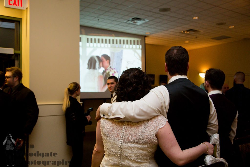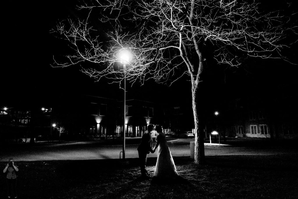 Sarah and Alex were married a year ago at Ivey Spencer Leadership Centre in London Ontario and I loved capturing their big day. The girls were all very relaxed getting ready, as were the guys who got to hang out and play pool, I always think the guys getting ready shots are made much more fun when they are doing an activity. When I asked the happy couple what they were most looking forward to it was their first look, it was an emotional moment and really allowed them to relax more through the rest of the evening with their guests. We captured a bunch of portraits of them outside with their wedding party, family and some special ones just of the two of them. We then headed in from the chilly March wind and they did what was a new thing at that point ‘faceswap’ which was my first bride and groom faceswap! After a few more indoor photos the ceremony was held inside and even though they had done the first look, it was still a very emotional moment for all involved. When future bride and grooms are tossing up whether to do a first look or not I always tell them how all of the emotion is still there for that walk up the aisle, its just that you can then hang out with your guests straight after the ceremony (or after the family photos). Rob from Music Central was there brilliant MC and I loved seeing their guests enjoying the same day slideshow I put together of their first look and earlier moments from the day. After the lovely speeches and fun dancing I headed outside with the couple for some dramatically lit nighttime shots- check out that clear sky!
