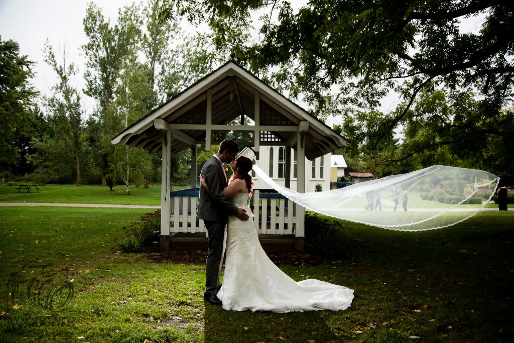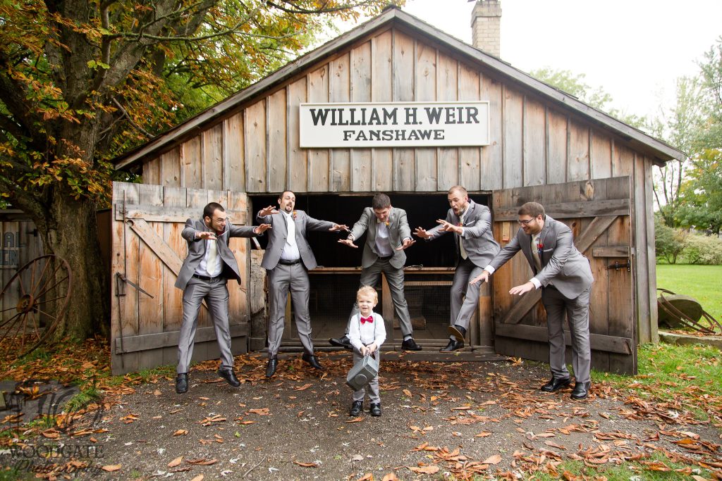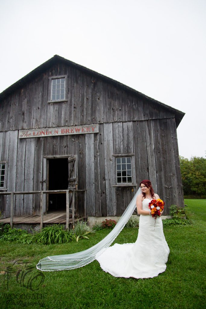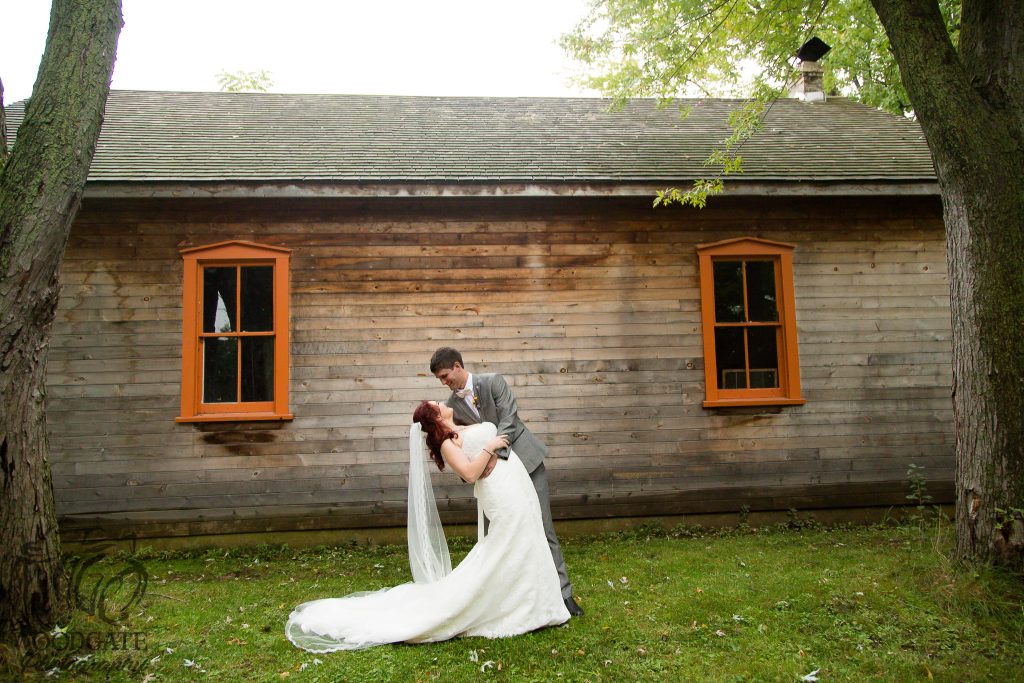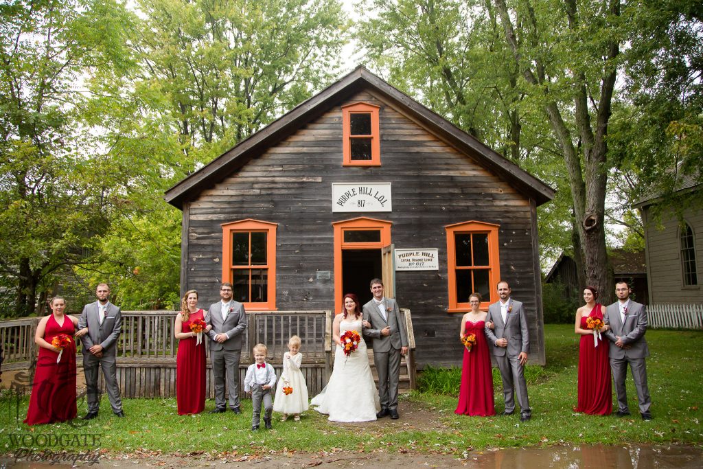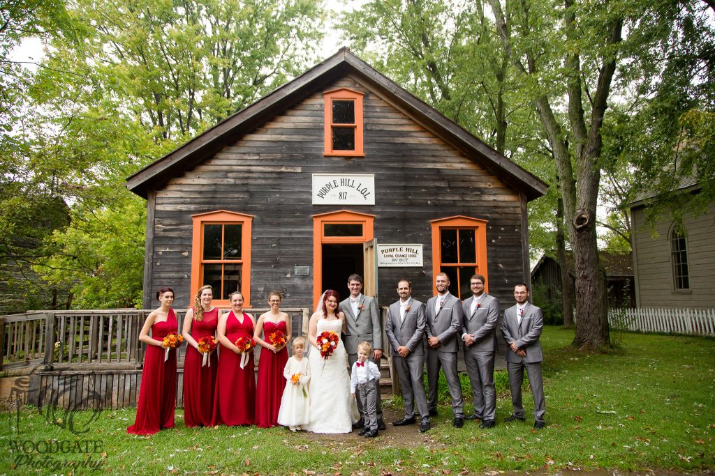First look and wedding party/ couple photo location: Fanshawe Pioneer Village