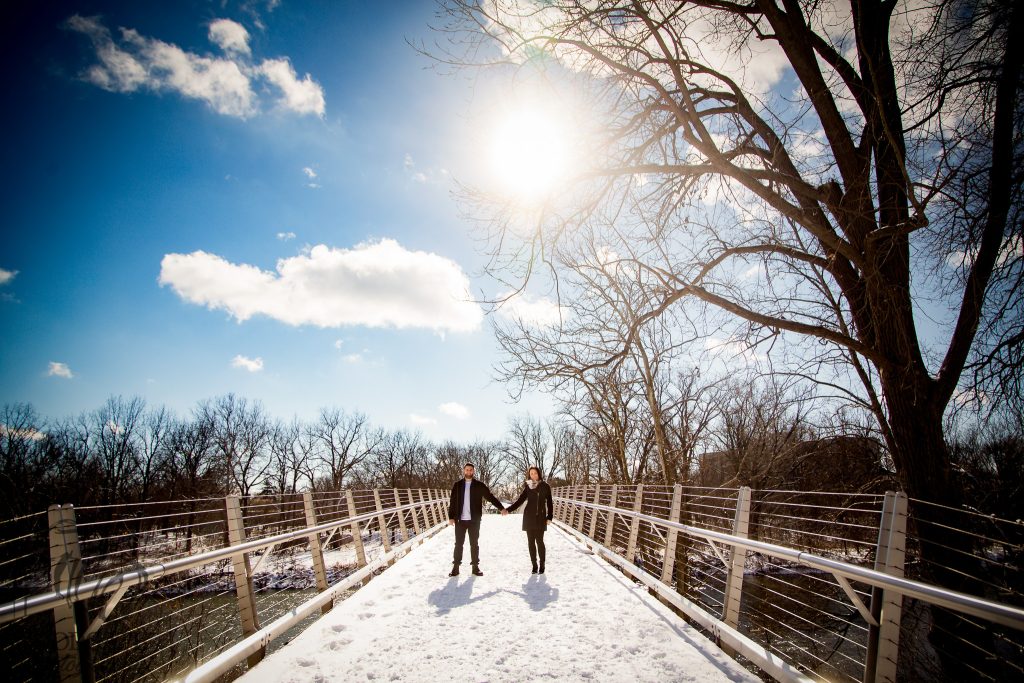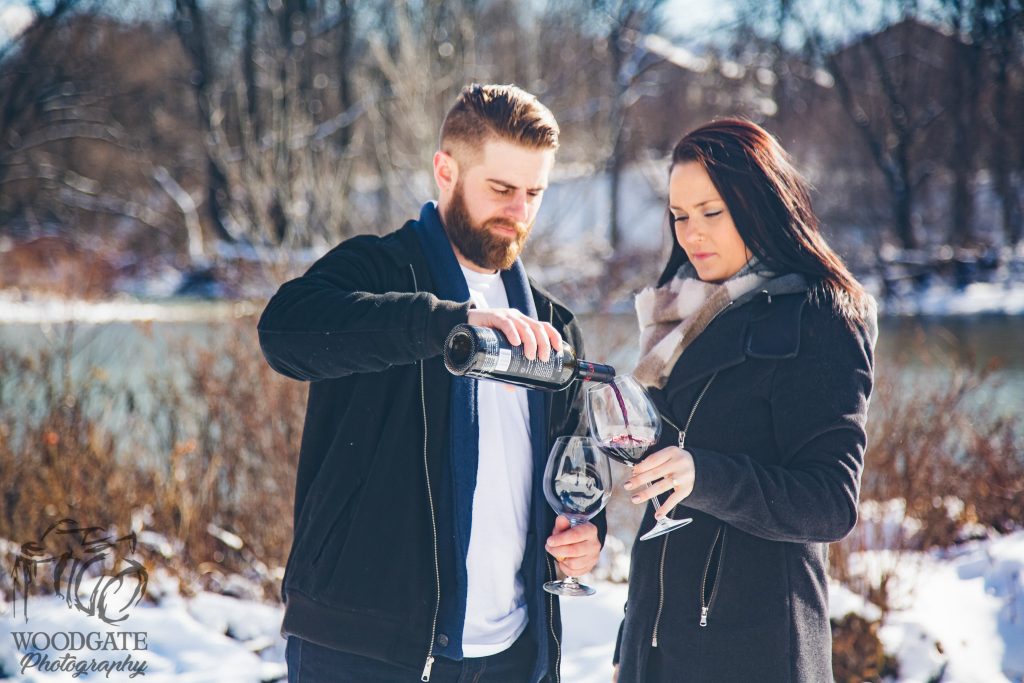 It is Jacqueline and Alex’s wedding today! Keeping up with last year I aim to post every engagement session on the wedding day of the couple. They are such a down to earth cool couple and are doing things very differently with their wedding photography and their day which should be fun but you can see more about that tomorrow with the sneak peeks. For their engagement session last winter we headed to Gibbons Park which looks great in the winter with the variety of backgrounds and they cracked open a bottle of wine. Alex proposed in Quebec city after a hike and bike ride and when he proposed with some beer he videoed it.We focused mostly on candid and fun photos and unlike the majority of my sessions I share, my faves from the session were a variety of the vintage and colour pop tones compared to the usual straight colour edits. Looking forward to photographing them today at Museum London.