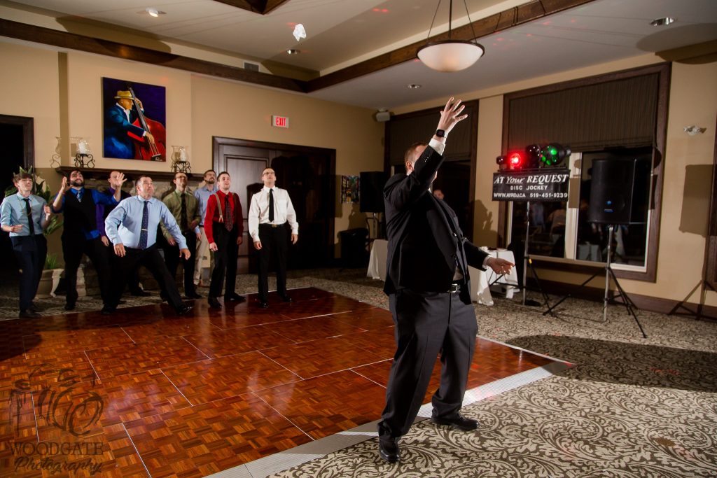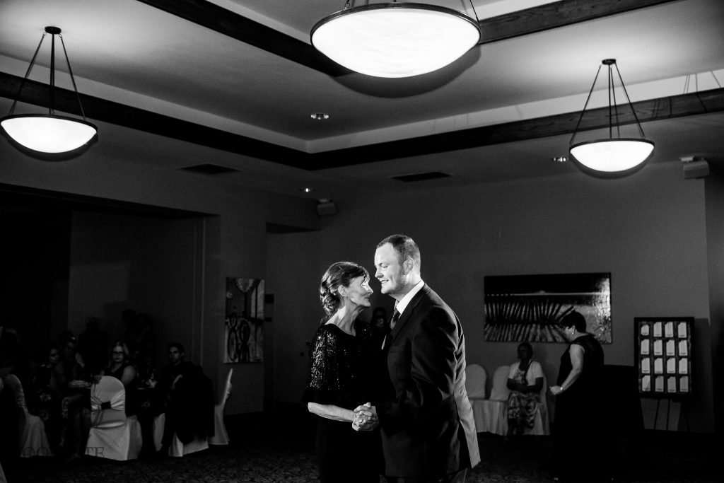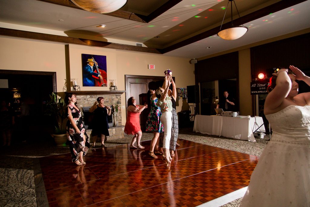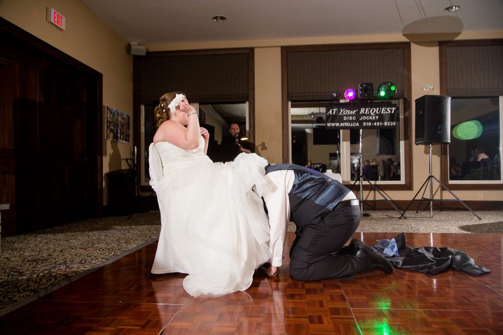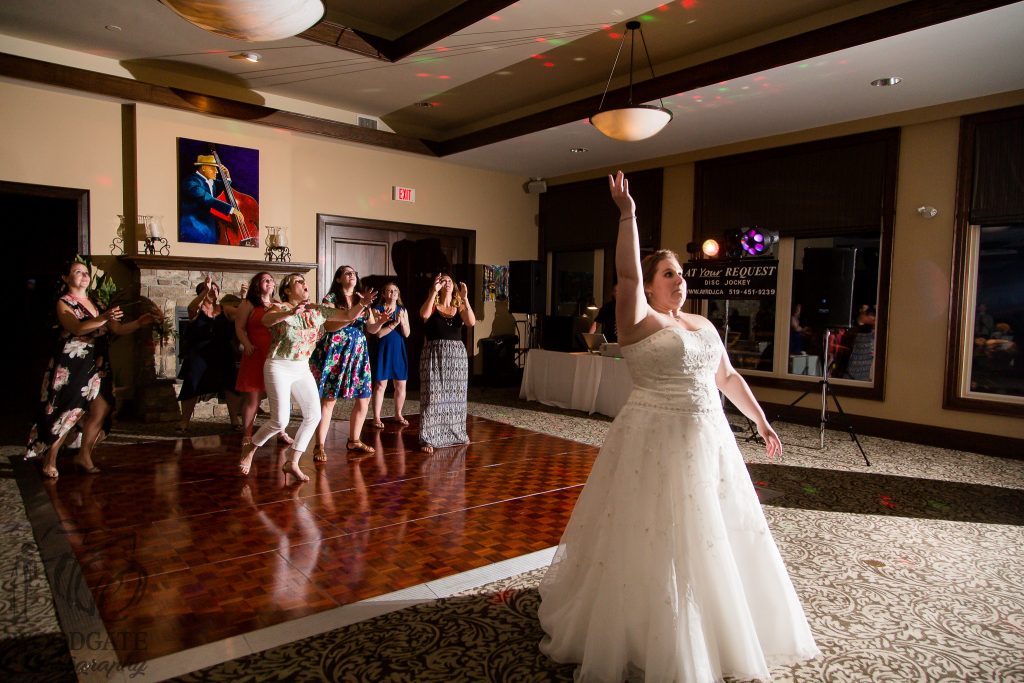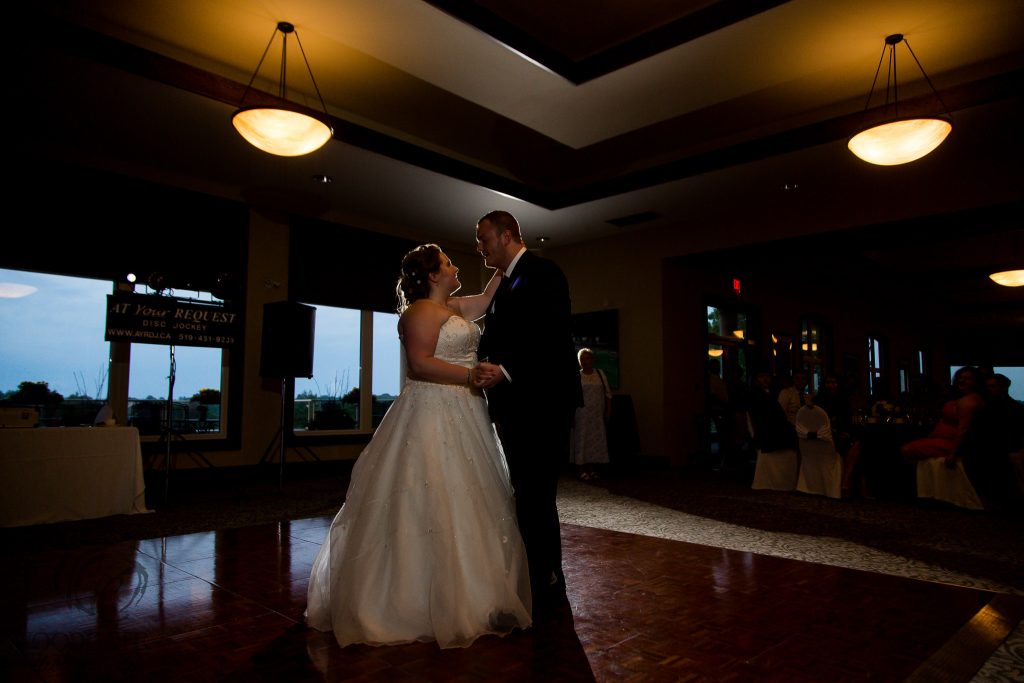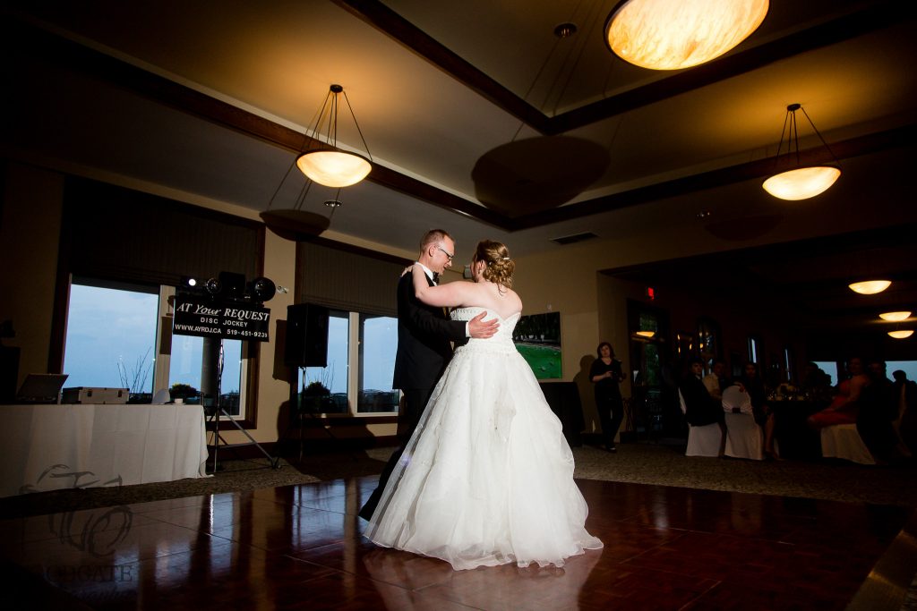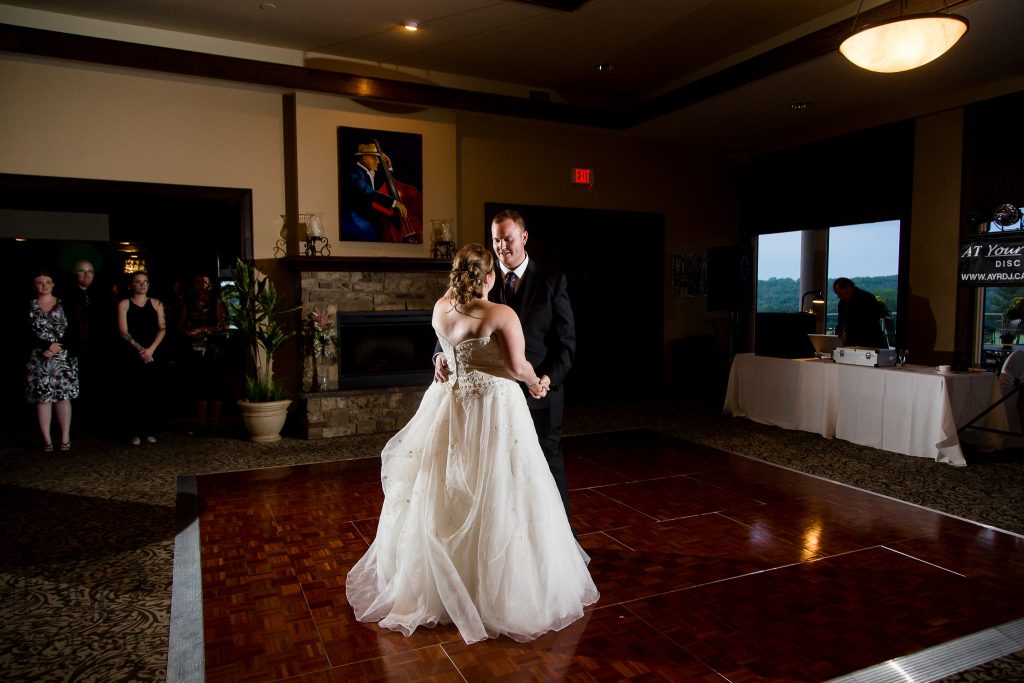 After Danielle and Joe’s fun winter engagement session I knew their wedding would be lovely at Riverbend Golf Club. I captured Danielle and her maid of honour getting ready surrounded by their family and her family dog- that tongue kills me! Lori-Anne captured the guys getting ready and we headed to the golf club and on the way over the radio I had a tornado warning! Which meant that we started the photography inside for the first look, then once the storm had past we went outside for a bunch of shots that I really like of both the wedding party and couple around the grounds. The ceremony was in full sun and you would never have thought that a tornado had just been through! After the ceremony we took a bunch of photographs with their family and a few more of just the couple then inside for the reception. The first dance shots and outdoor night shots are some of my faves!