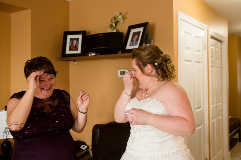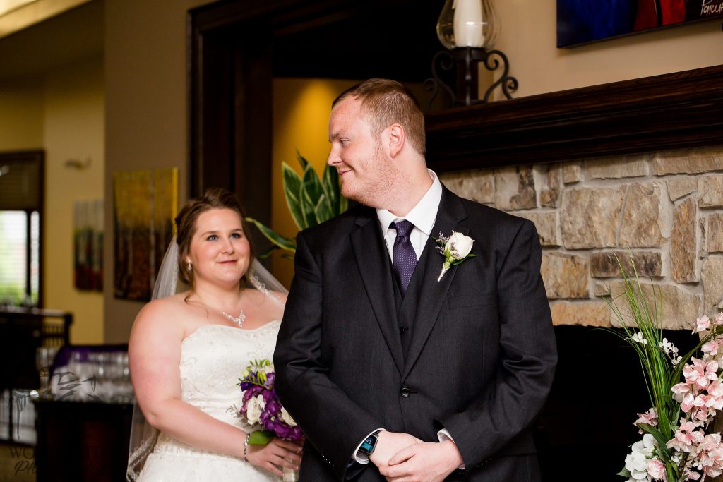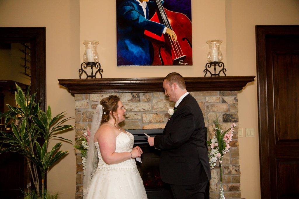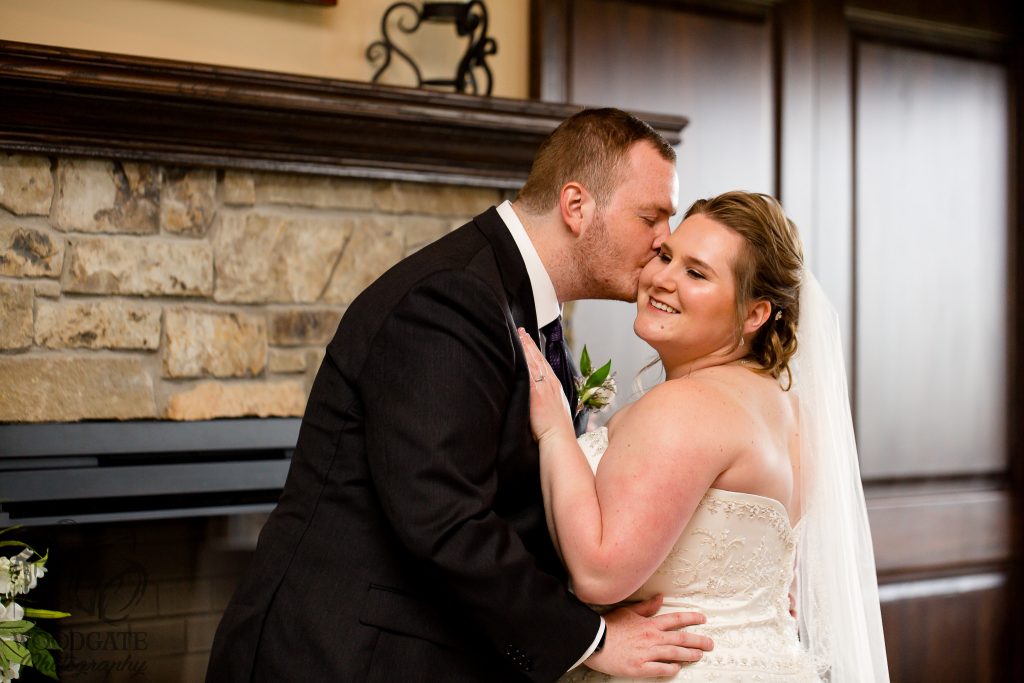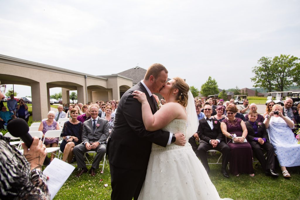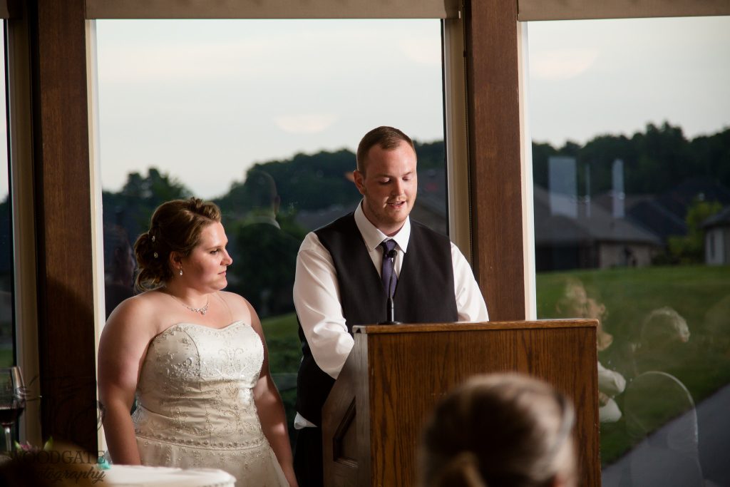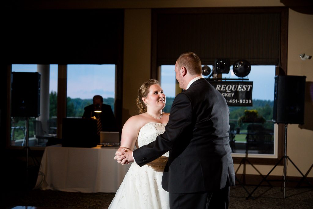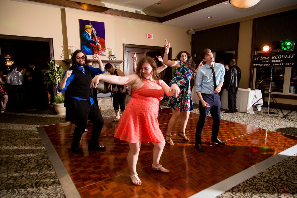 After Danielle and Joe’s fun winter engagement session I knew their wedding would be lovely at Riverbend Golf Club. I captured Danielle and her maid of honour getting ready surrounded by their family and her family dog- that tongue kills me! Lori-Anne captured the guys getting ready and we headed to the golf club and on the way over the radio I had a tornado warning! Which meant that we started the photography inside for the first look, then once the storm had past we went outside for a bunch of shots that I really like of both the wedding party and couple around the grounds. The ceremony was in full sun and you would never have thought that a tornado had just been through! After the ceremony we took a bunch of photographs with their family and a few more of just the couple then inside for the reception. The first dance shots and outdoor night shots are some of my faves!