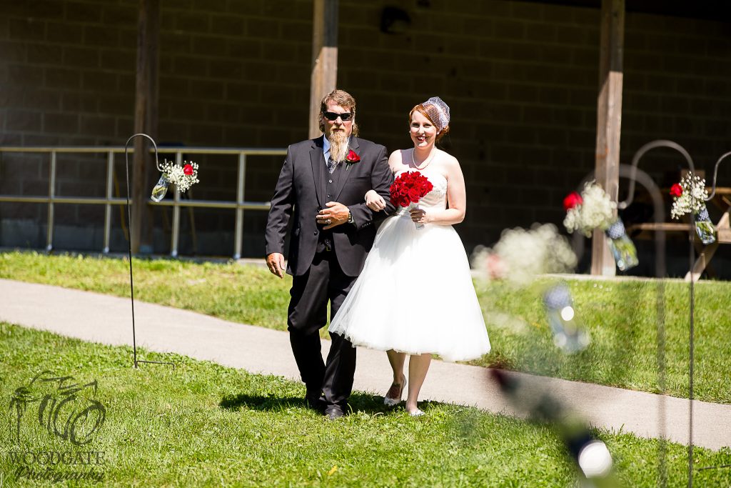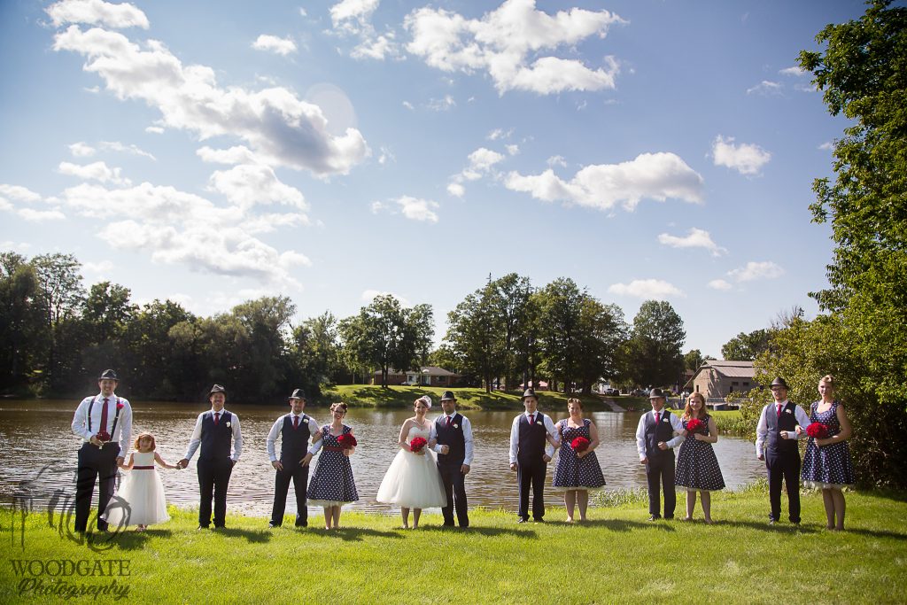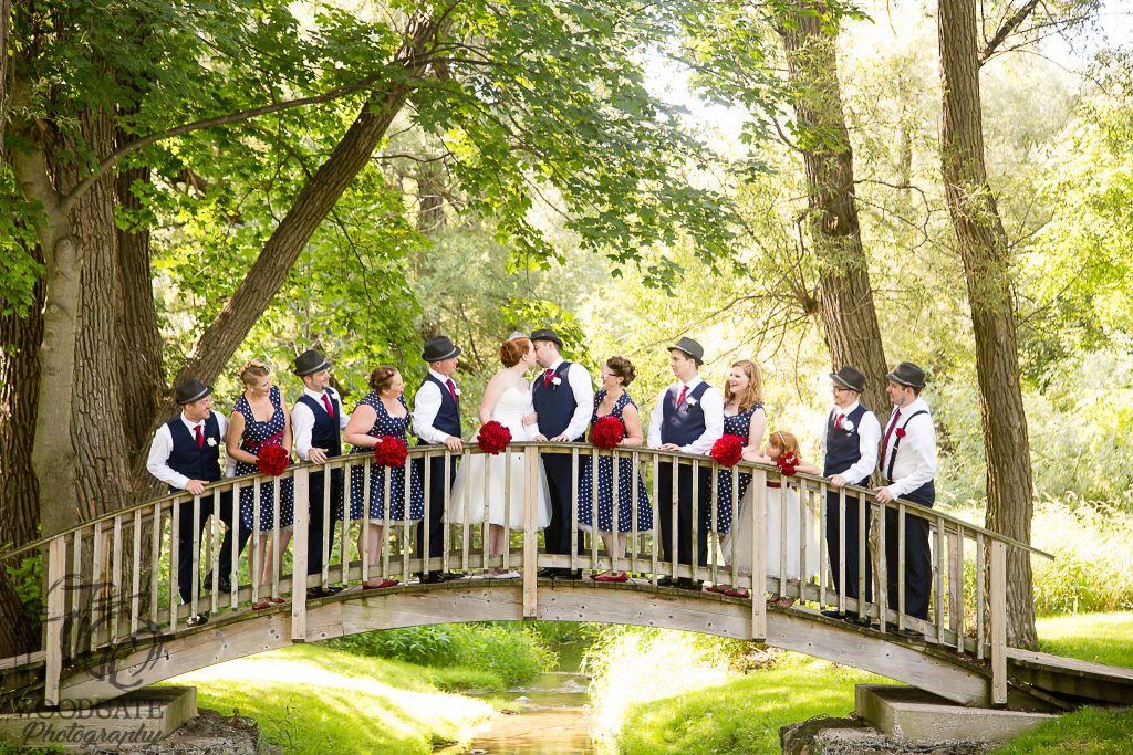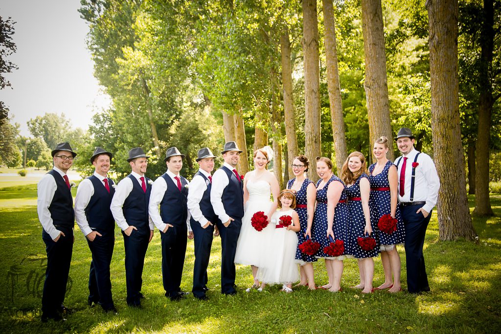 This gorgeously styled wedding was so much fun to photograph despite the heat, I just love vintage style weddings! Everything from the brides tea length dress and the bridesmaids polkadot dresses to the grooms fedora was perfect for this vintage themed wedding in Brussels, Ontario. Kate-Lynn and Gordon’s big day started with me photographing the girls getting ready at home. Everything for their wedding was DIY with lots of help from friends and family, from the hair and makeup to the transportation in her grandfathers gorgeous vintage car. The ceremony was held in a lovely park where we were able to do all of the family, wedding party and couple photos. From there it was to the reception hall for lots of sweet speeches, romantic dances, fun games and some of my fave night shots of last year!