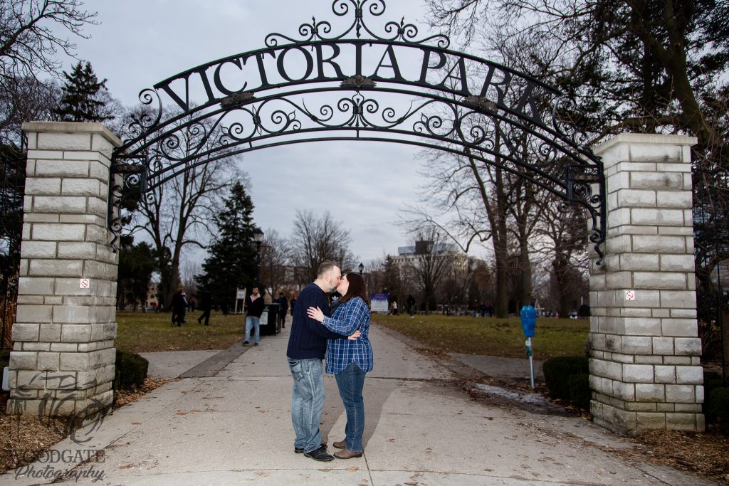Dusty and Jeff are such a sweet couple and their big day has been a long time coming! We met up at Victoria park in downtown London Ontario for their Hockey themed engagement photos. I loved the save the date on the puck idea and although it was cold you can’t tell with the love radiating off of these two! After the hockey themed shots we went for a bit of a walk throughout the park and then to the iconic entry sign to the park and across the road to Prince Alberts Diner. Looking forward to photographing their big day today at Bellamere Winery!