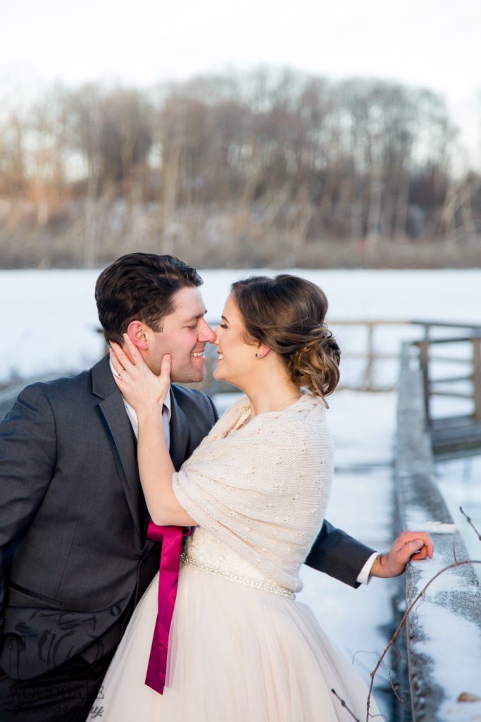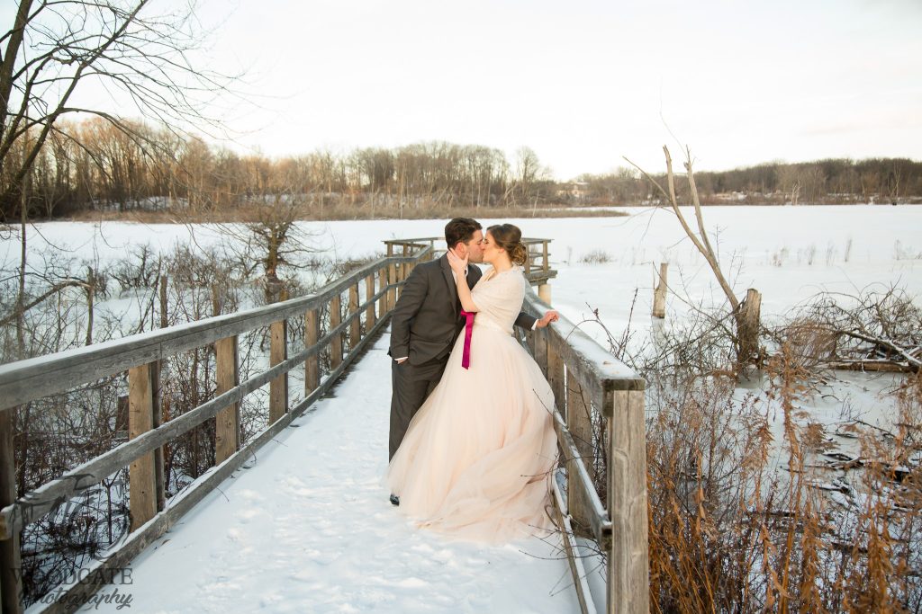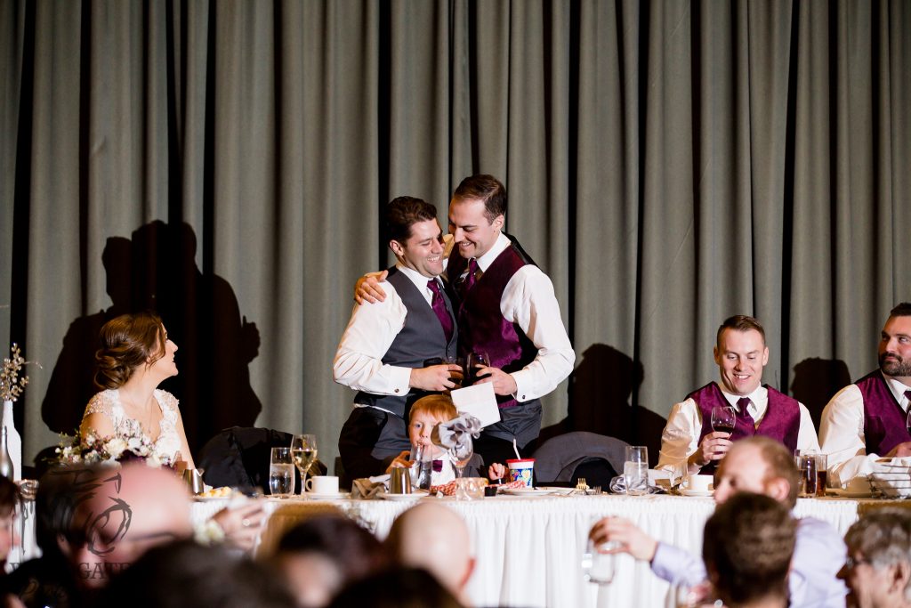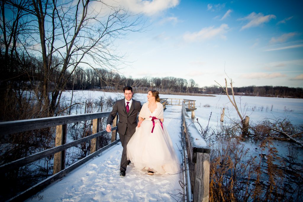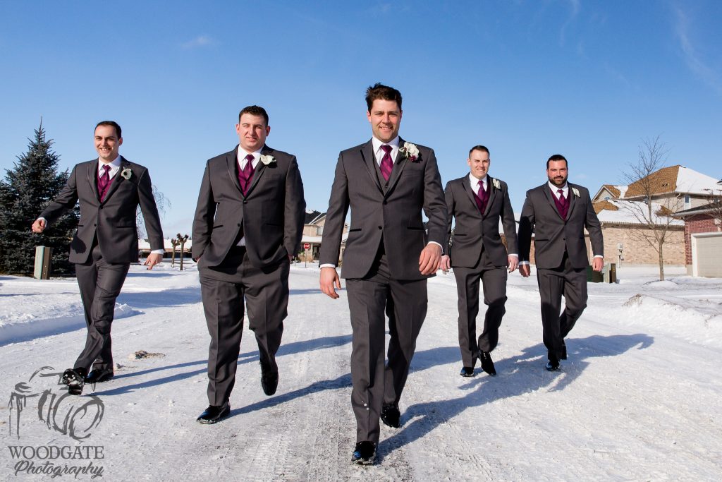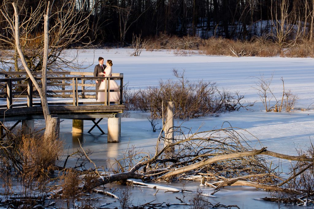 Kelsey and Chris’ wedding last winter at the Lamplighter Inn was a pleasure to photograph. Seriously one of the most laid back couples I’ve ever met, even when the guys boutonnieres were ruined by the cold weather they were still chill. The ceremony was in the natural light atrium- not many venues allow for natural light ceremonies in winter so this was very nice. Straight after the ceremony we headed across the road to the pond area behind Tourism London and captured some shots of the wedding party and new Mr & Mrs before the sun went down then it was back into the warmth of the lamplighter for family photos and a few more of the couple. The reception had some great speeches and sweet first dances and then a few brave people helped us to make the snow fly for a night shot outside.