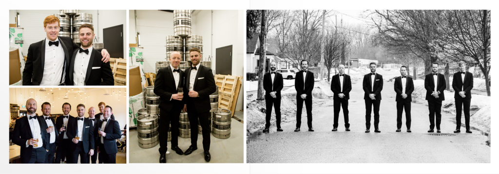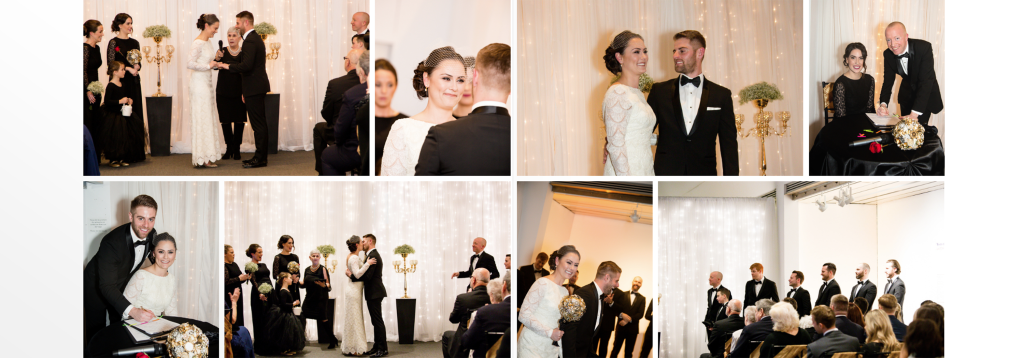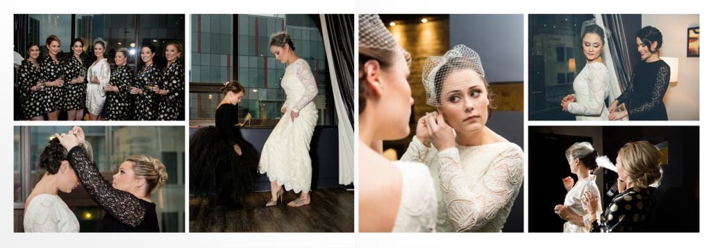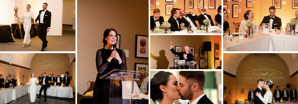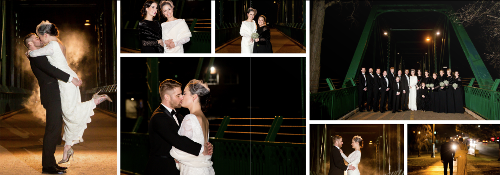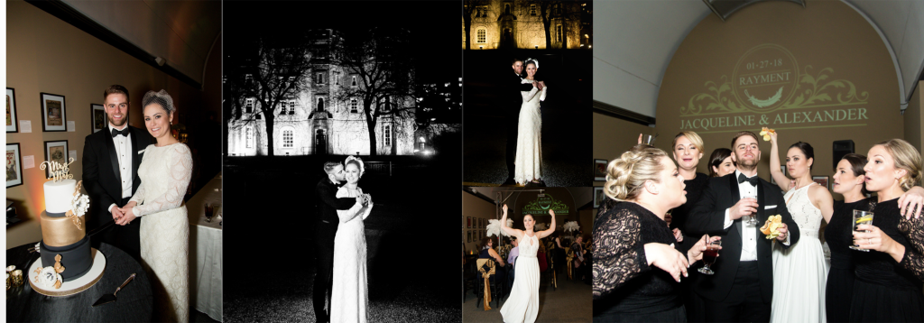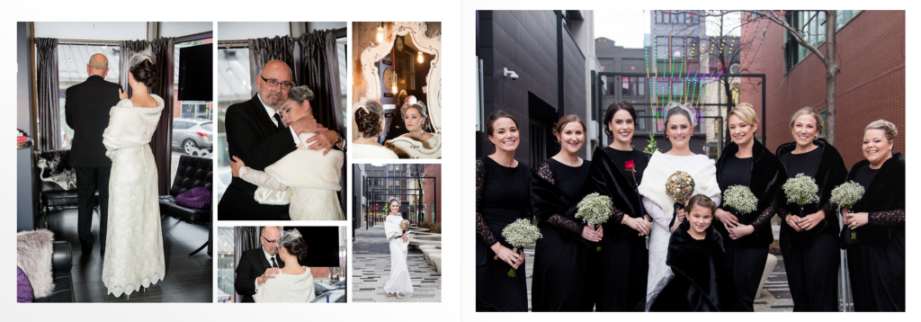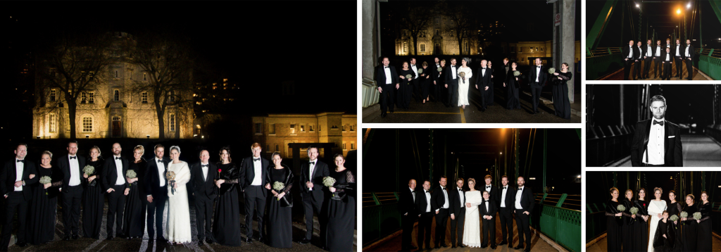 The girls got ready at Museum London and Jacqueline had a very sweet first look with her dad, she was wearing her mothers wedding dress and it suited her perfectly! I loved all the classy, elegant and vintage touches. Clara photographed Alex getting ready and I love that he had a photograph taken with their dog! Alex and Jacqueline’s wedding last winter at Museum London was very unique! Most winter weddings do a first look then ceremony and reception as the sun goes down so early but for this unique wedding they wanted to have the first look be up the aisle so we did all of their family photographs inside at Museum London and then the wedding party and couple photographs outside near the museum and at Ivey Park. As they did the photographs in the dark it was important to them to have a photographer who was able to photograph well in these conditions- it was also quite cold!