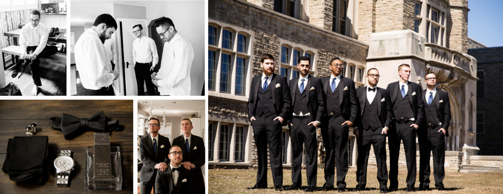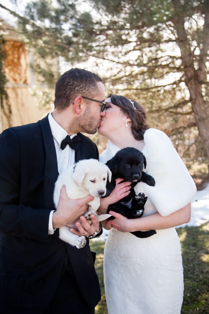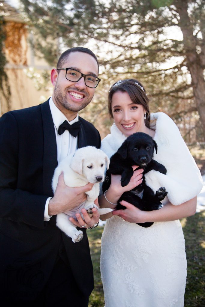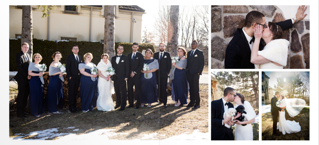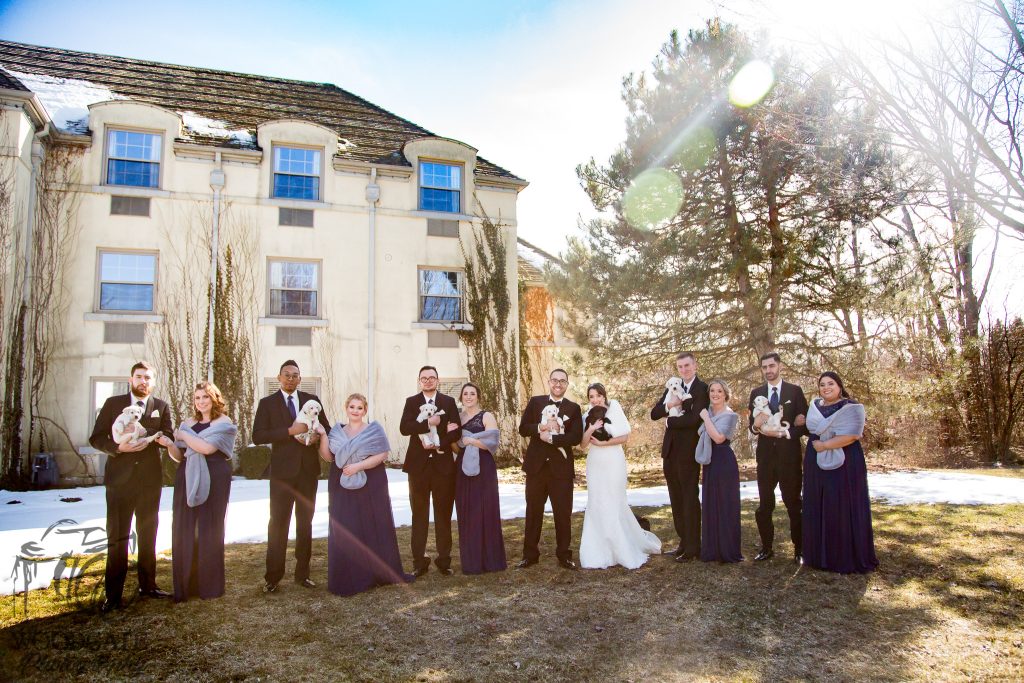 I had fun photographing Ashley and Jordan’s fall engagement session and I knew their wedding would also be great! Some of their wedding photos actually made it to the blog soon after their wedding because the puppies from Barks and Meow’s rescue were included in some of the photos! The day started with the girls getting ready at Windermere and the guys getting ready at home- they then went to Western for a few shots with Clara. It was a super sweet and emotional ceremony followed by family, wedding party and couple photos. It was a cold but sunny winter day so made for some nice bright images! It was a fun reception and I love that they chose a shot of their friend group dancing to Eminem to be in their album- which is shown below!
