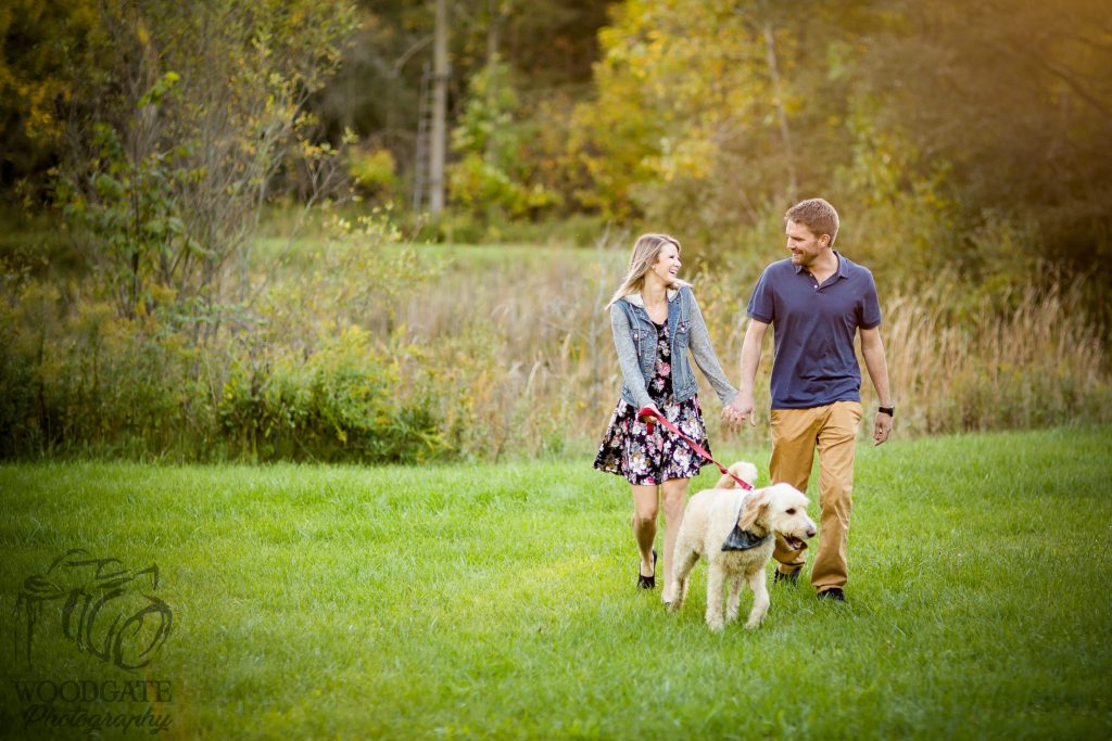 Sam and Aaron tie the knot today and I’m excited to photograph their big day at Pineknot Golf Course. These photographs were captured last fall (when I was pretty majorly pregnant) at their family farm and I just loved their pup in their photos! Such lovely golden sunset light and some dramatic shots at the end 🙂