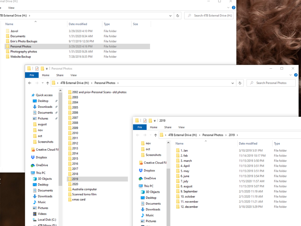 Step 2. Make a folder to save all of your photographs to. I recommend doing this on a computer with a fair amount of space available on it. (I just checked my folder and it has 892gb of personal photos!) Next, make sub-folders for each year, you may then want to make sub-folders inside those to order by month.