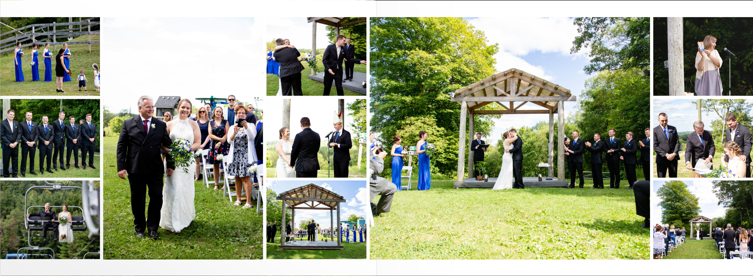 Cara & Sean’s happy and bright August 2019 wedding was captured by Clara and Alana at Boler Mountain wedding photography. It was the first wedding for our team at this venue and as you will see, it had gorgeous natural backdrops and fun ceremony with the ski lift to the top of the mountain and elegant decor for the indoor reception. Even more important through are the moments captured including playing a street hockey game with the groomsmen (in full suits) during getting ready, the first looks of the bridesmaids, dad and finally Sean seeing Cara for the first time- which gives me all the feels. I can’t wait for us to be able to photograph another wedding at this venue!