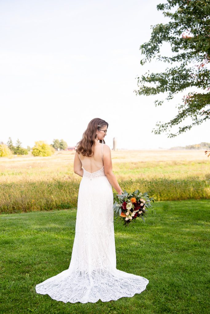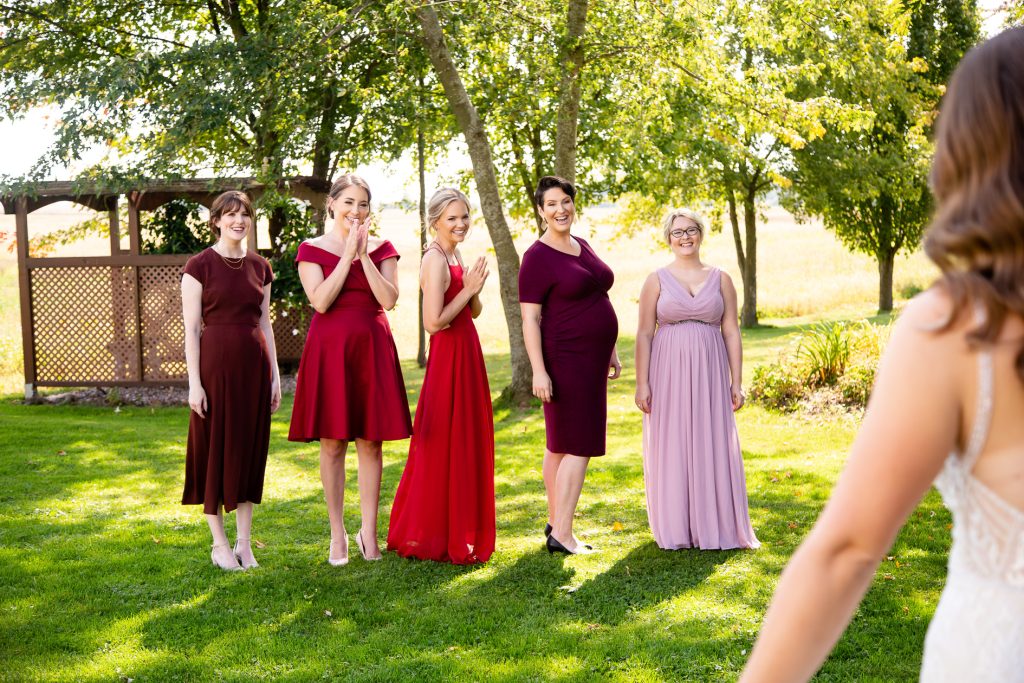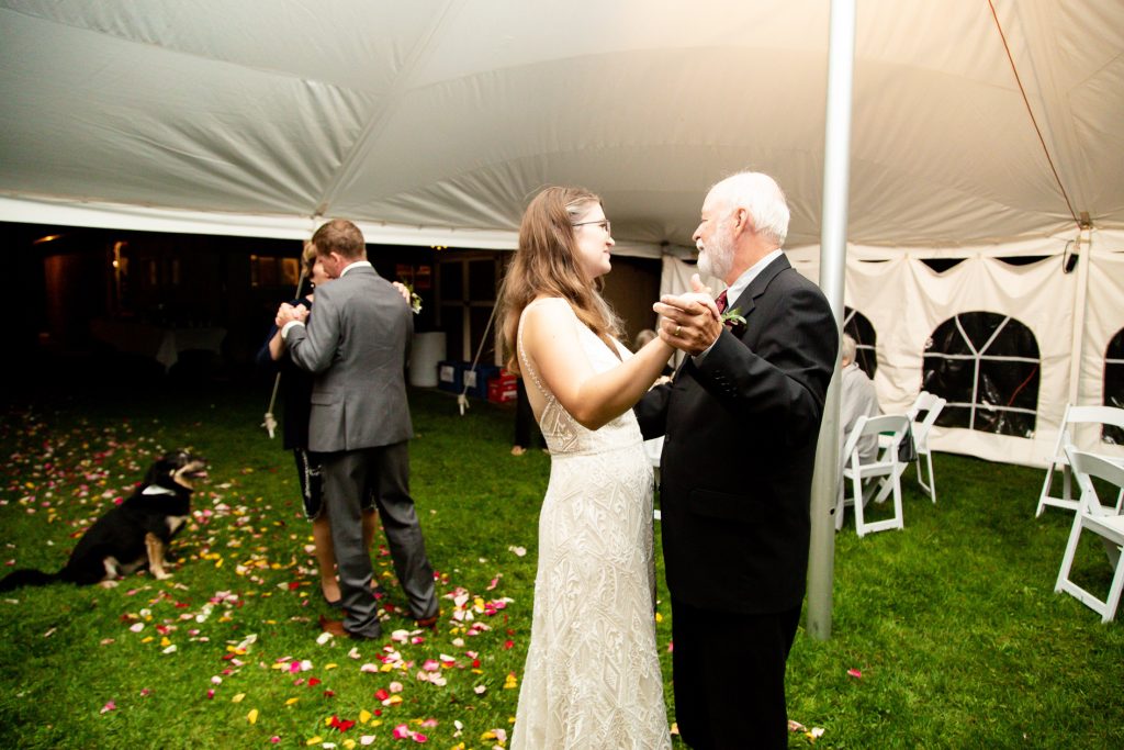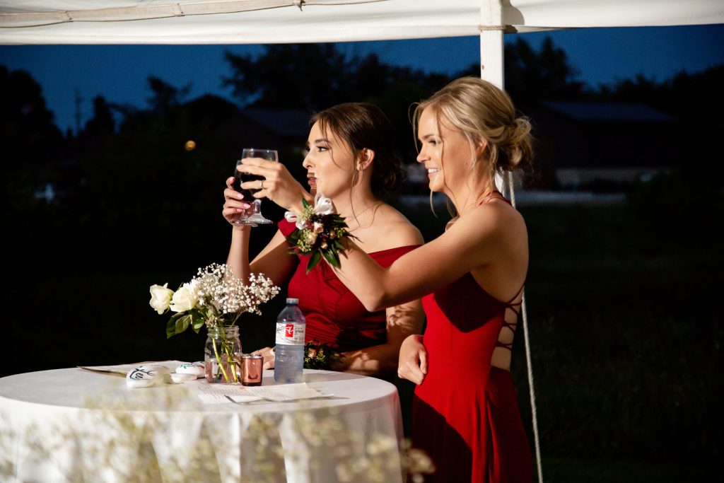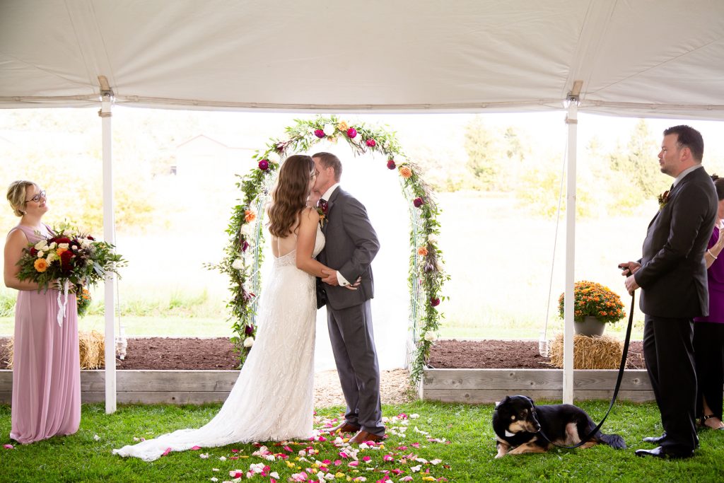 Clara photographed Laura & Lee’s backyard wedding almost 1 year ago! The day started with the girls getting ready at home, then first look and wedding party (including their doggo) and couple photos in St Marys, then back to their Backyard Wedding Photography, Lucan Ontario. Many weddings last year changed from a venue to a backyard and we love photographing these types of weddings and they are always relaxed and we still are able to photograph the full day right from getting ready through to the creative night photos.