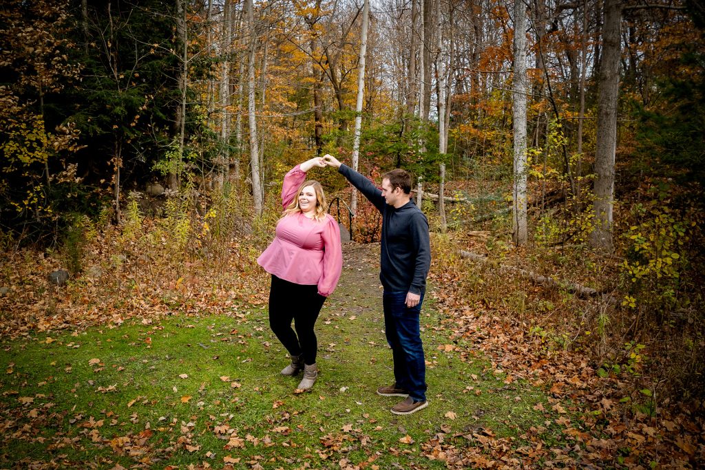 I’m excited to photograph Sam & Kayne’s big day today at the Ukrainian centre, they were very smart when they booked their venue thinking to get a space larger than they needed so that if there are capacity limits (as there are right now) that they will still be able to have all of their loved ones in attendance. I photographed Sam & Kayne’s Fall engagement session with pregnancy announcement at my go-to place in the fall, Wonderland Gardens and as we had such a late fall last year there were actually plenty of yellow leaves on the trees (earlier in the season, Cameron was having to do a lot of editing work to make the leaves look more yellow). We photographed their session quickly as they had run a about half an hour late, so in the half hour ish we had left we were able to still get plenty of variety for them. I am looking forward to seeing them again for their Maternity photography session which is included in their wedding package. So happy that they get their wish of tying the knot before their little one comes along and also super happy that we have pretty snow on the ground for their photographs!