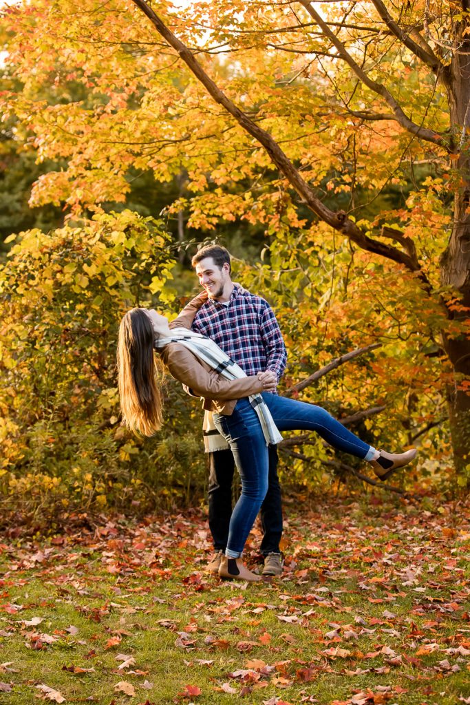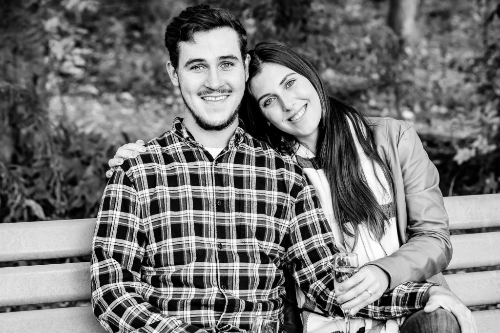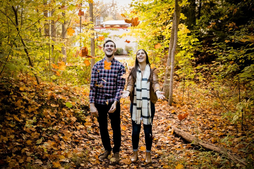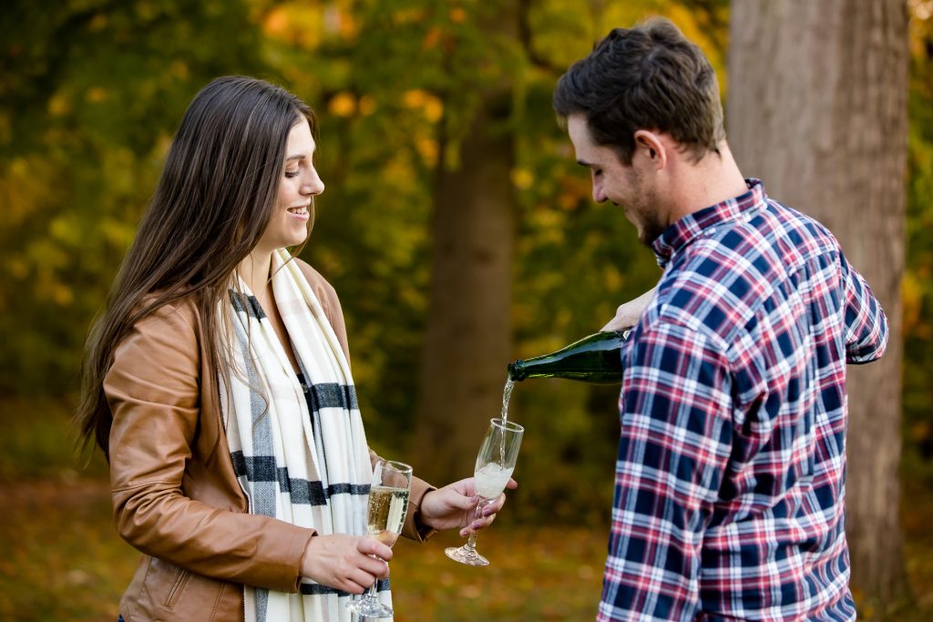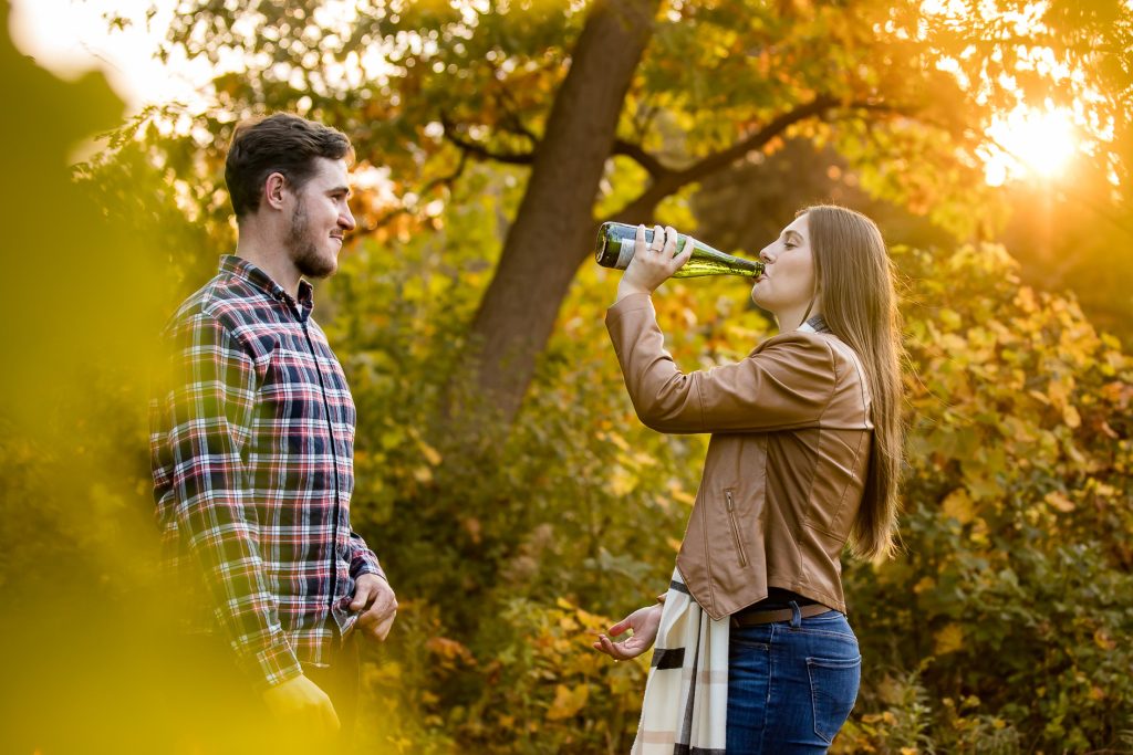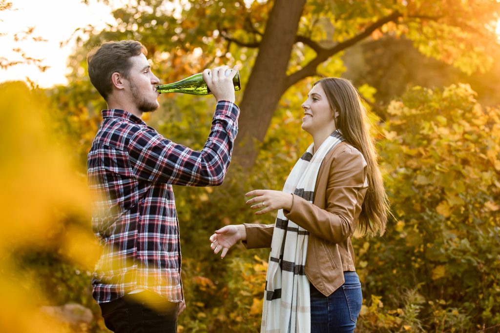 I’m off to photography Deanna and Nicks wedding today with Clara and just had to share their Engagement session Wonderland Gardens in fall last year with some very fun moments. I recommend to bring an activity to your engagement session like champagne!