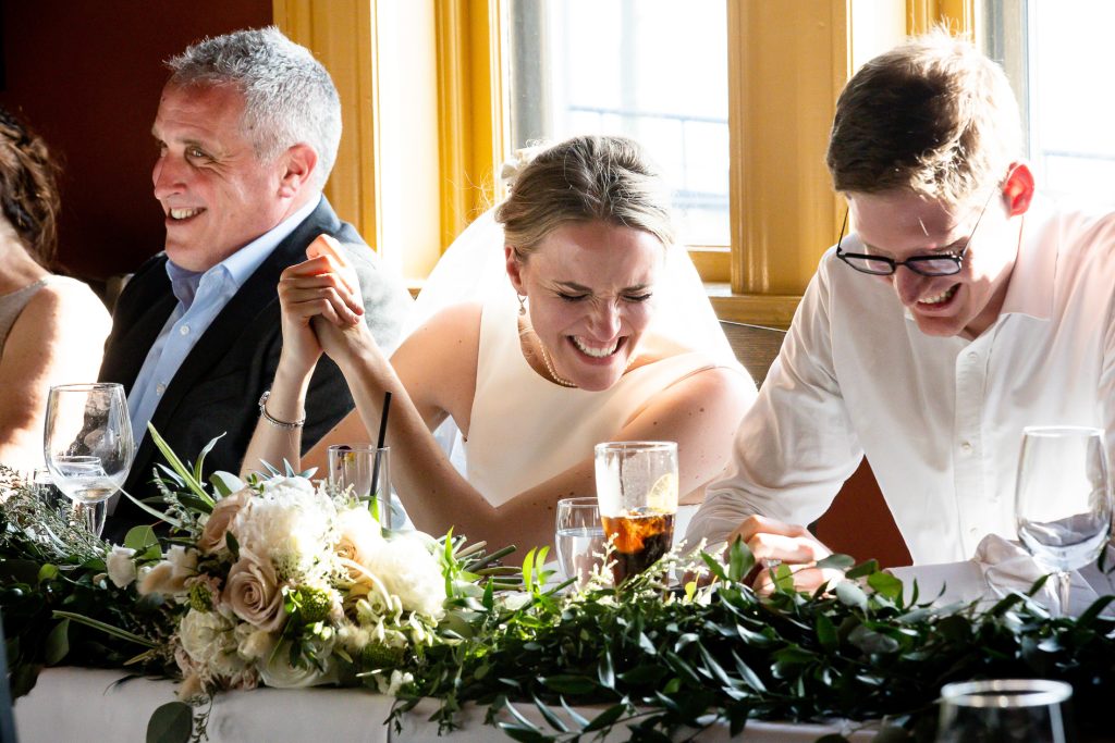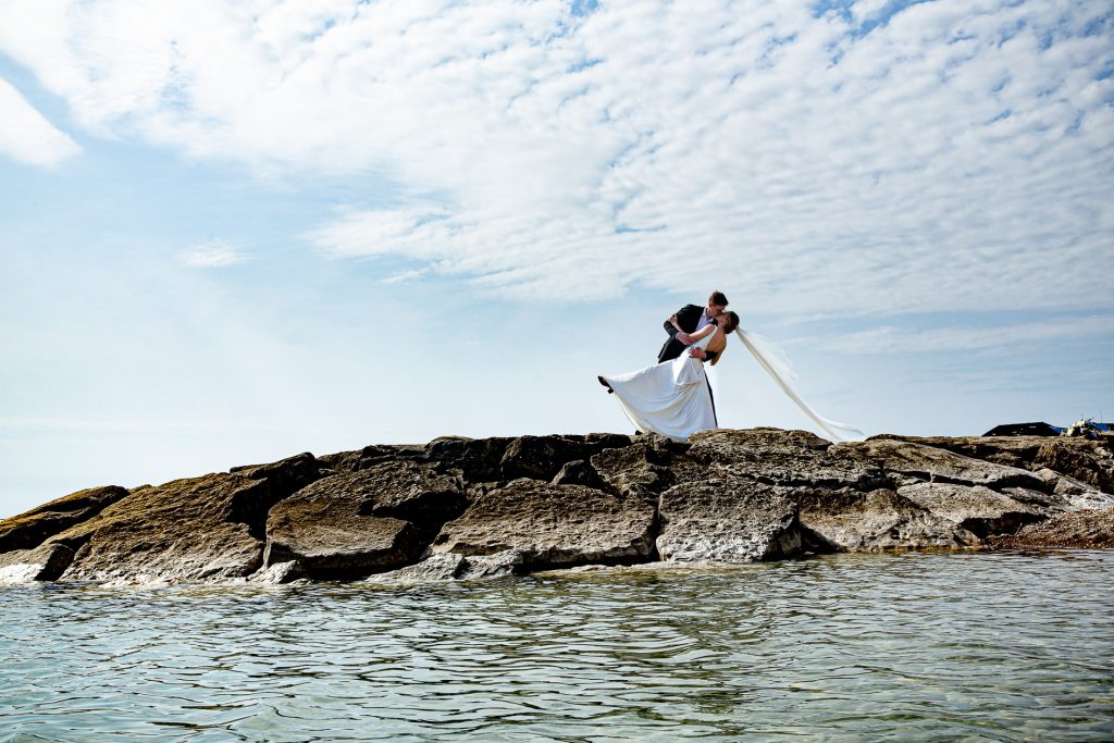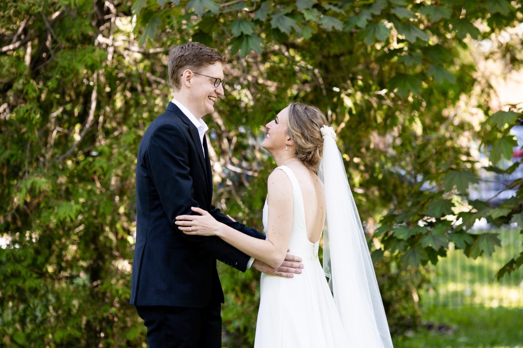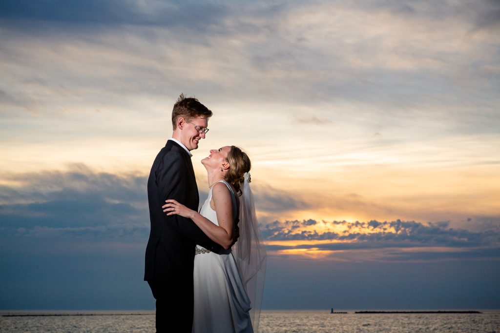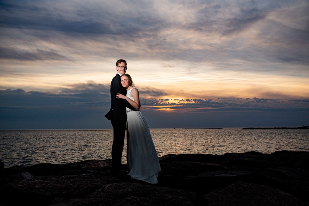 Clara and Lori photographed Nina and Adam’s Goderich Wedding Photography almost 1 year ago! Clara had got to know the couple at their Old Court House engagement session just days before their wedding- they live in the states. The days started off with each side of the wedding party getting ready in a couple of Airbnb’s in Bayfield. They then had their first look in the yard of one of their getting ready locations and afterwards headed to Bayfield Town Hall for their ceremony. After their formals of family, wedding party and couple photos at the beach in Goderich it was time for their reception at Beach Street Station on the beach in Goderich. They were super lucky with the weather to get such a gorgeous sunset and after dinner CLara and Lori captured a group photo outside the restaut