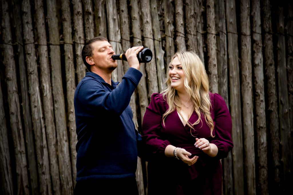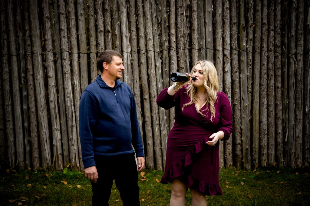 We’re off to Purple Hill today for Jenna & Dan’s big day. Excited to have the whole team- Clara, Lori (doing video) and myself there! Clara photographed their Engagement session Medway Forest London Ontario at the end of fall last year. They started with some photos with their gorgeous daughter and playful doggo, then couple photos including a champagne pop!
