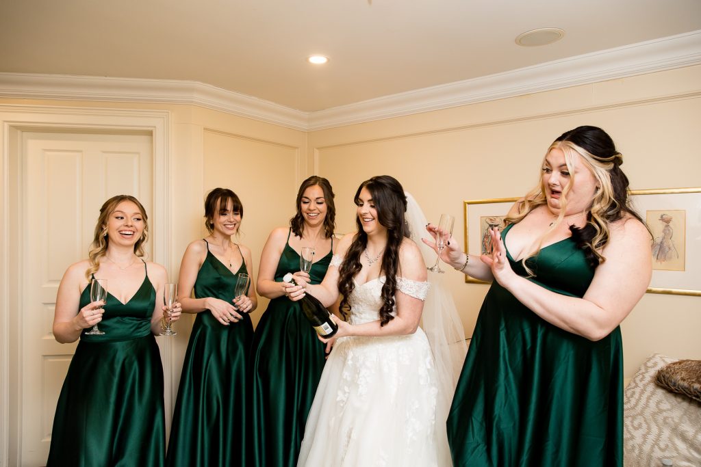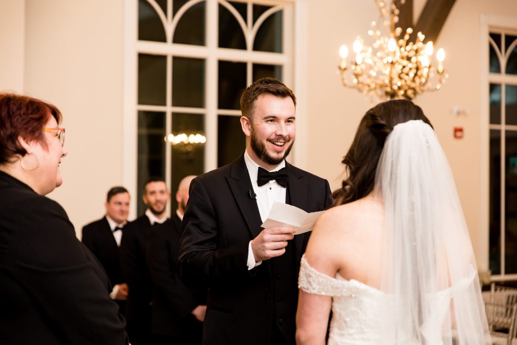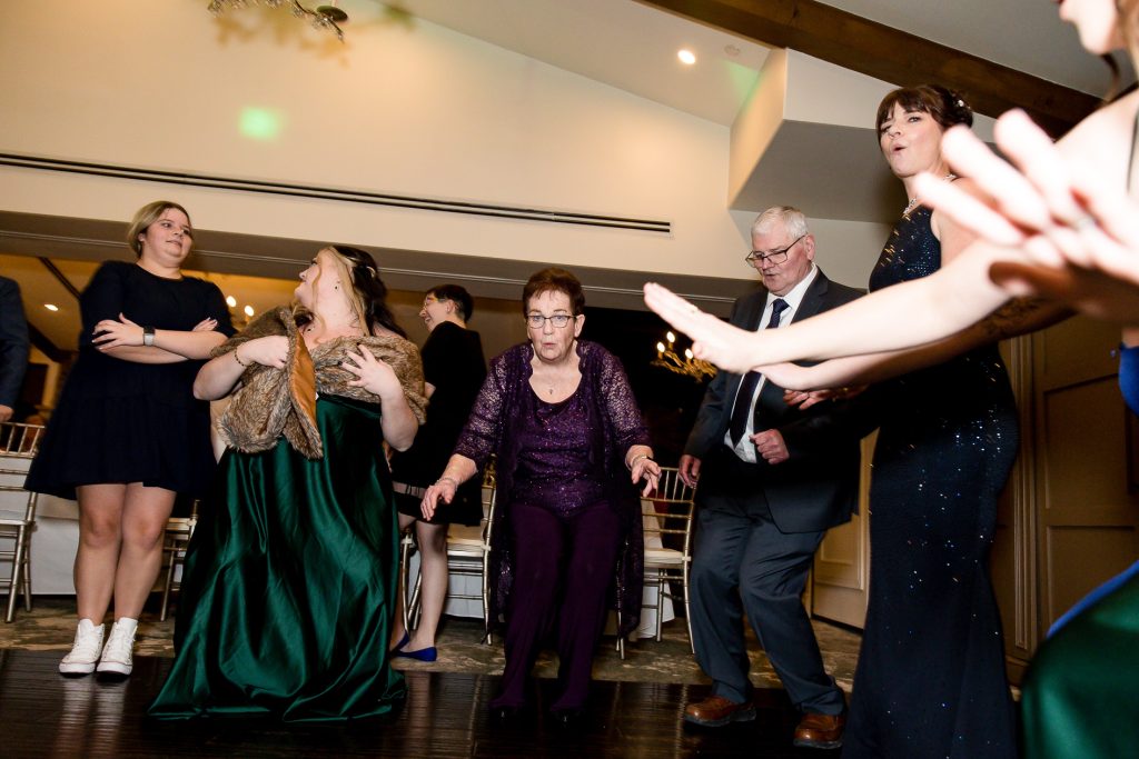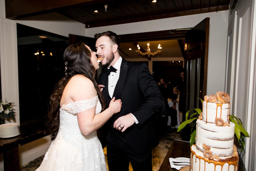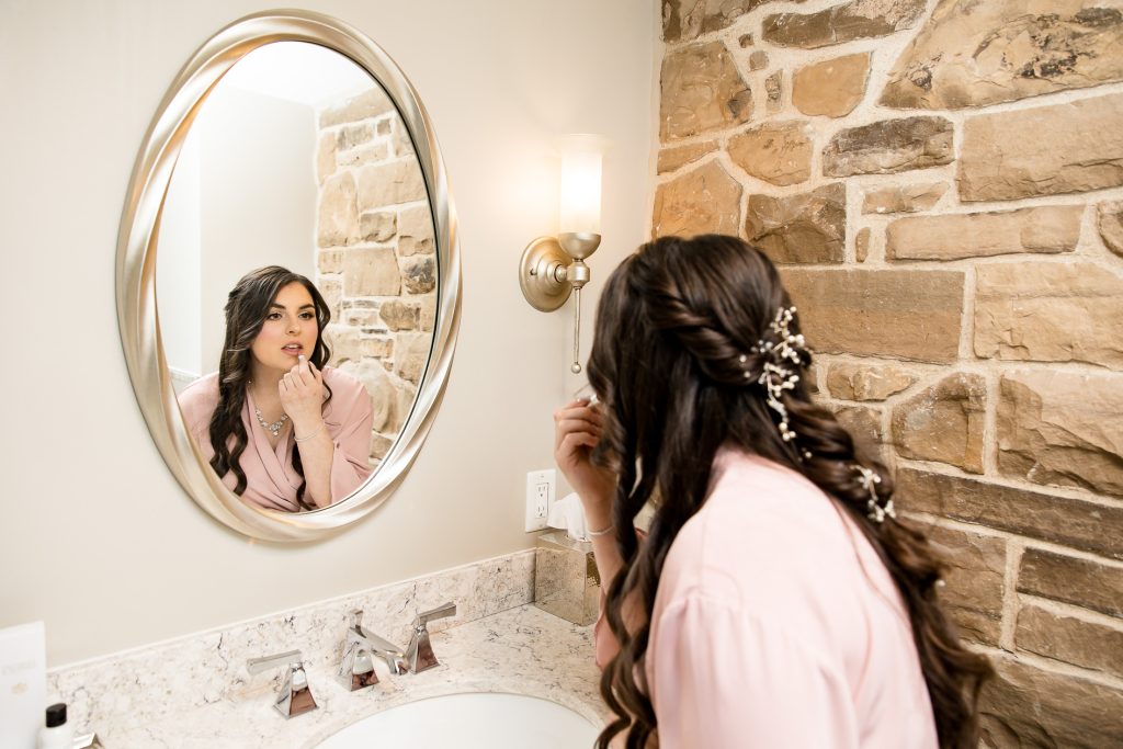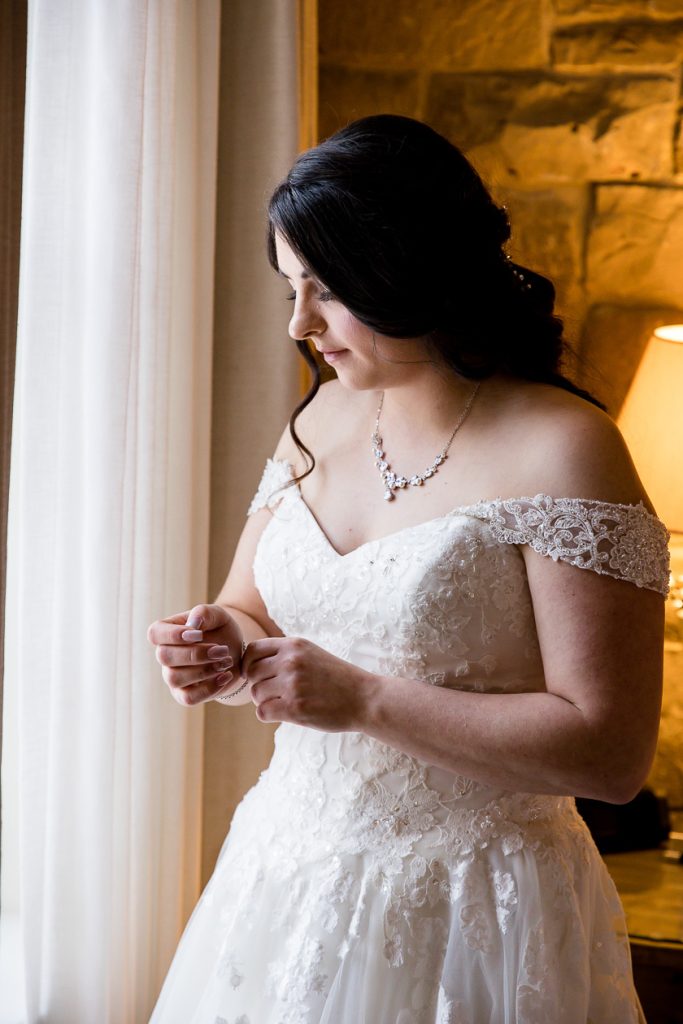 I started with photographing Emily and her side final moments of getting ready at the beautiful Barracks Inn, it was a gorgeous room for getting ready photos with plenty of natural light- although I think my favourite photo is with the backlight on the perfume. We then headed to Ancaster Mill where the staff were so helpful and welcoming. One of the coordinators even helped me with the fog and snow night photos! Their ceremony in The Miller’s Chapel was short but very sweet and after their family photos I loved getting creative with lighting- while working as quick as possible to get the wedding party back inside into the warmth. Their reception was held in the Millview Room and the food was delicious. After some speeches the Dj from AK Productions rocked the party.