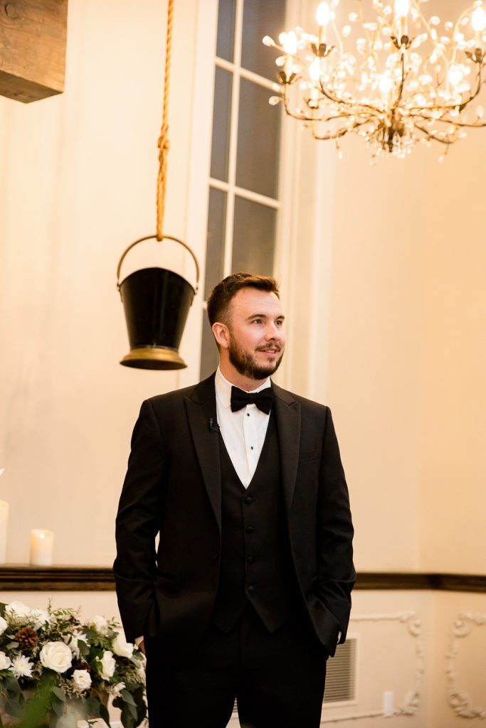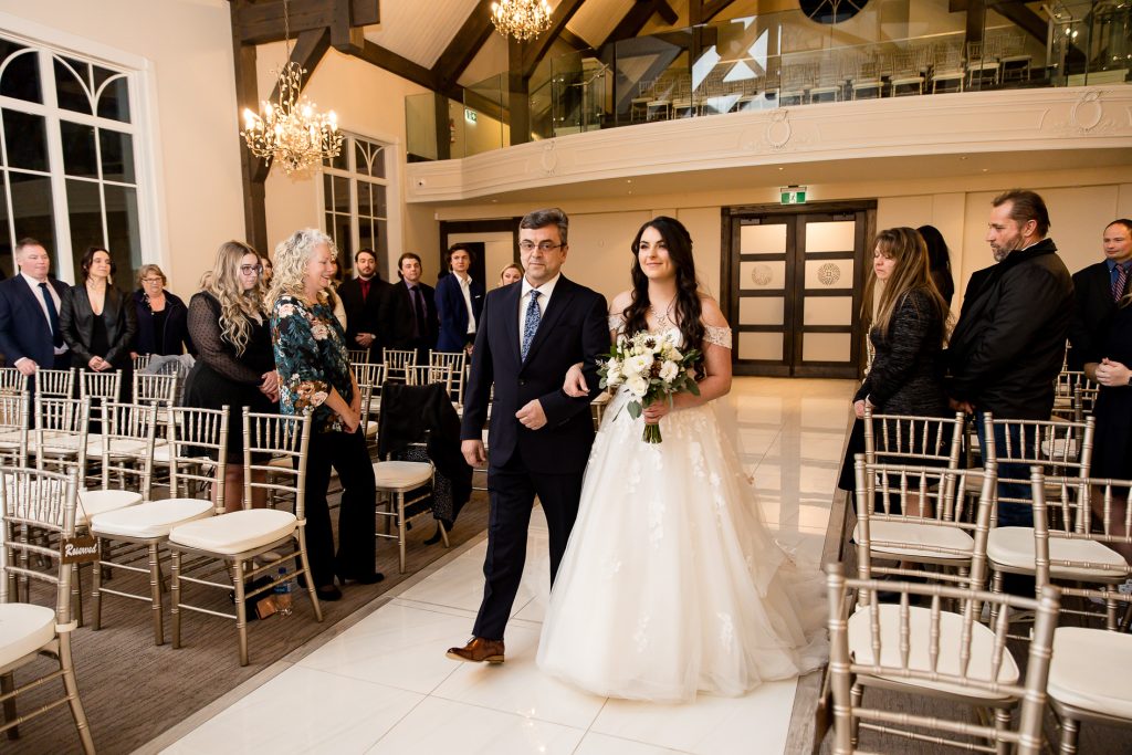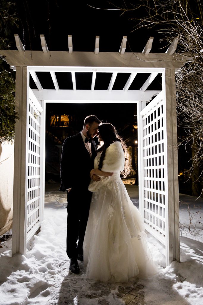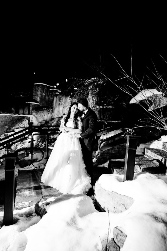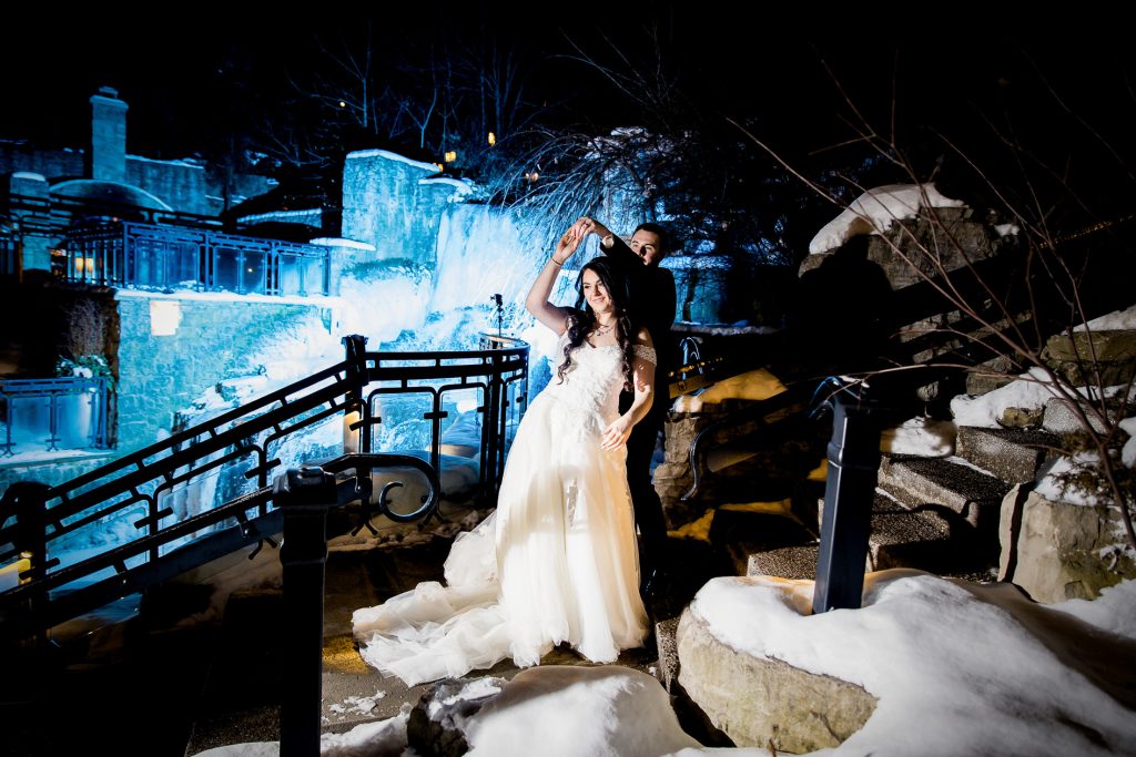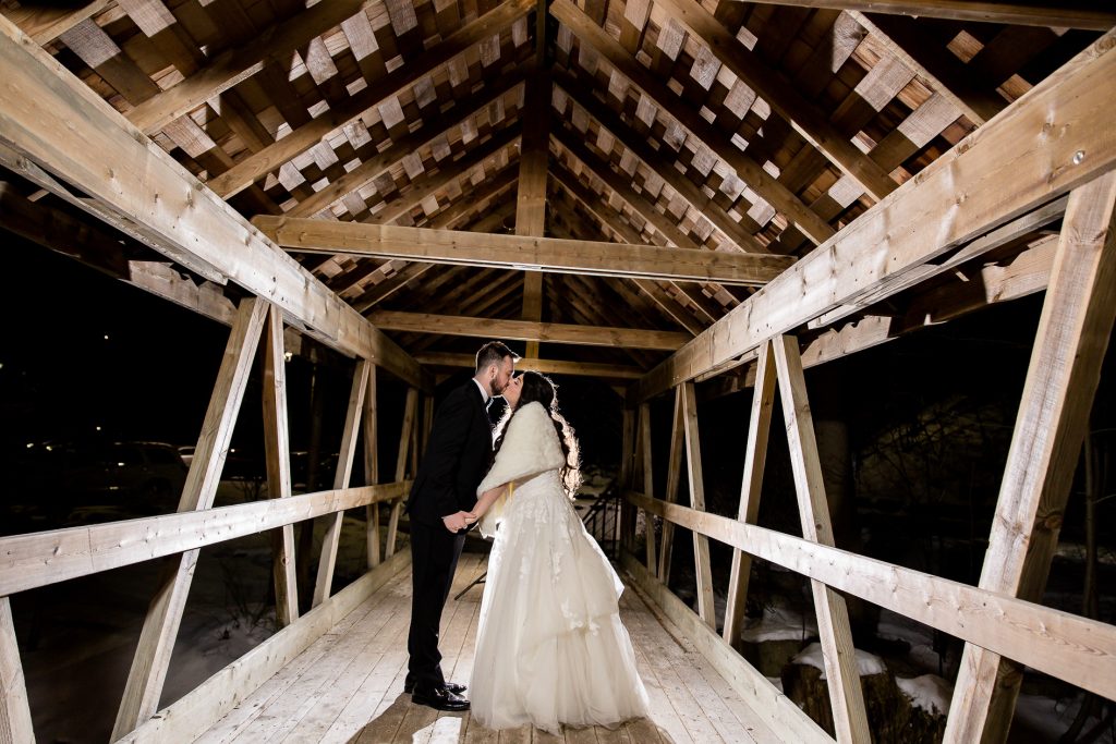 It was lovely getting to know Emily and Brent at their Mill Pond engagement session and their winter Ancaster Mill Wedding Photography was elegant and down to earth. They booked with us as they knew that they didn’t want to do a first look, so that all of their photographs would be taken in the dark after their winter 6pm ceremony. We are always happy to photograph the day as the couple wants it to be scheduled, and can make a custom package to allow for shorter days etc.