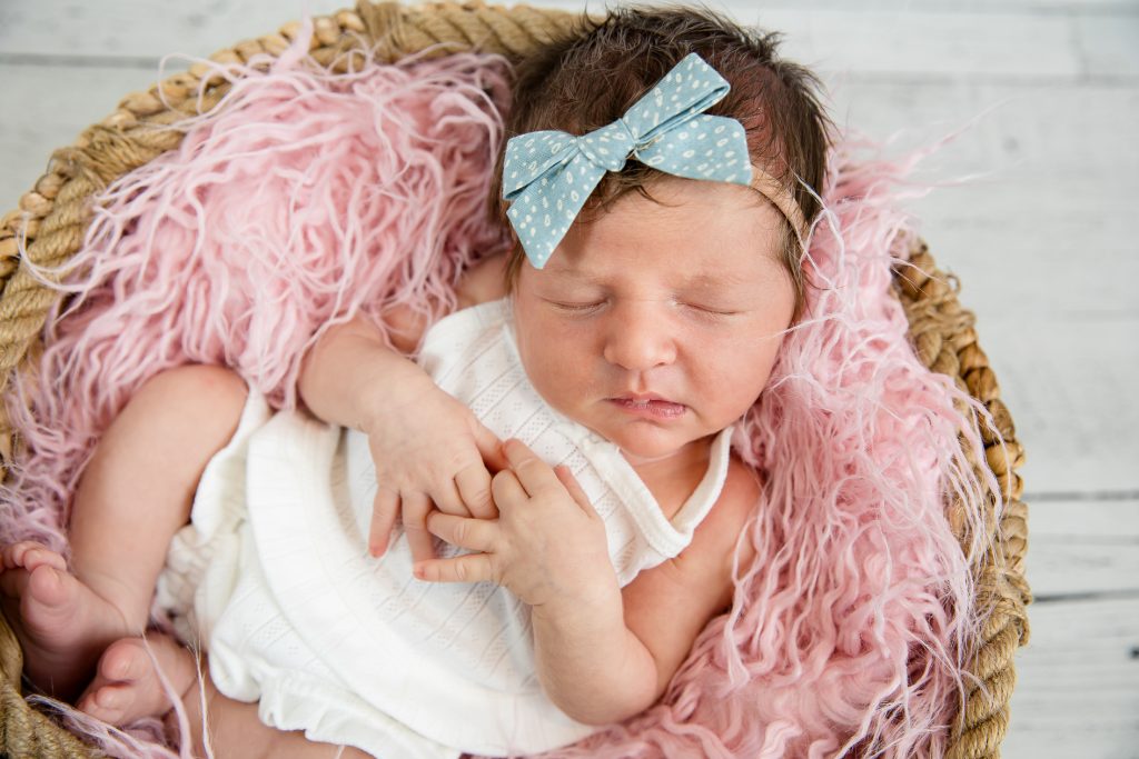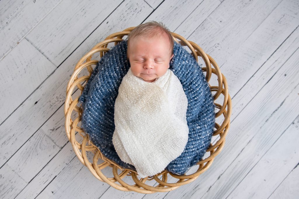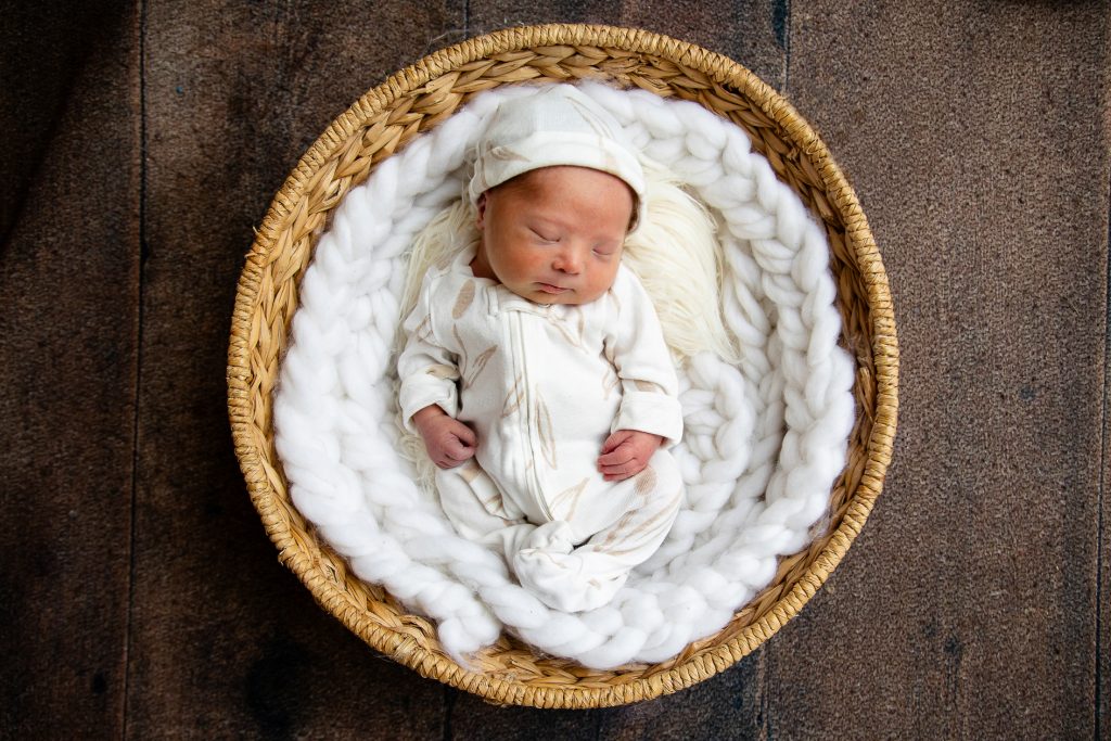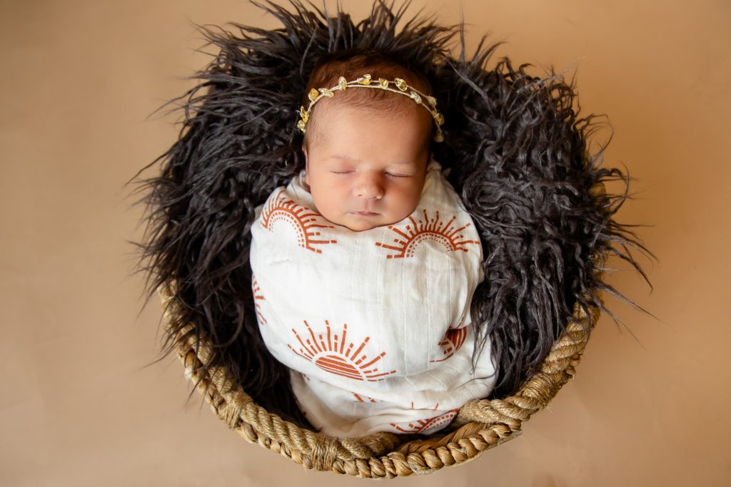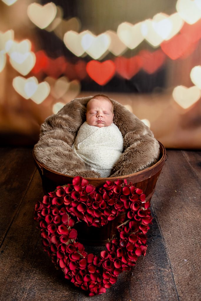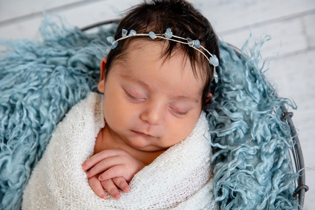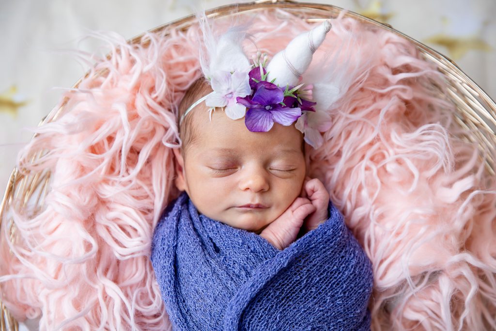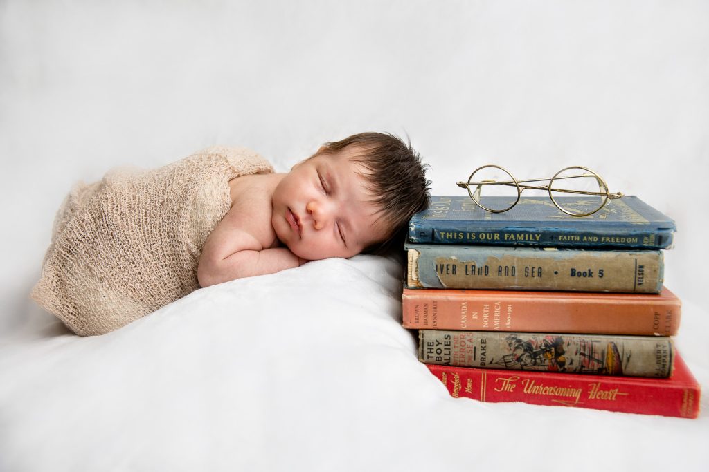 Most newborn sessions are captured at my studio with various backgrounds and props. I have many outfits/wraps and a variety of items for incorporating hobbies etc.