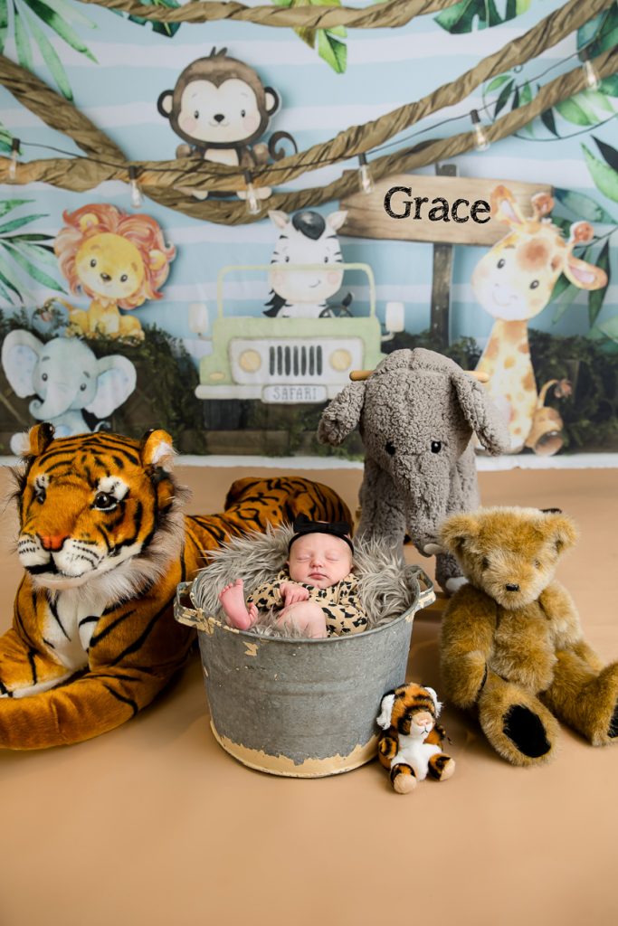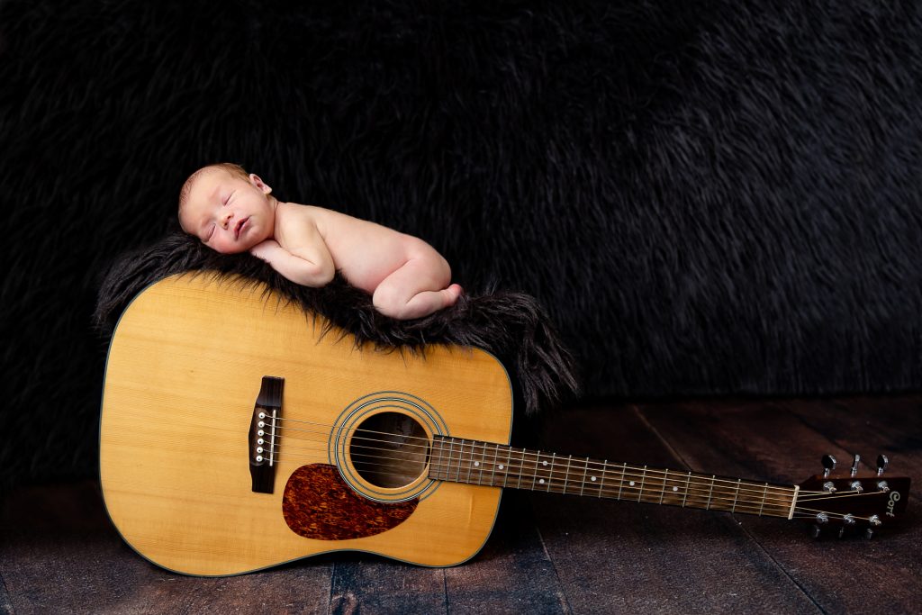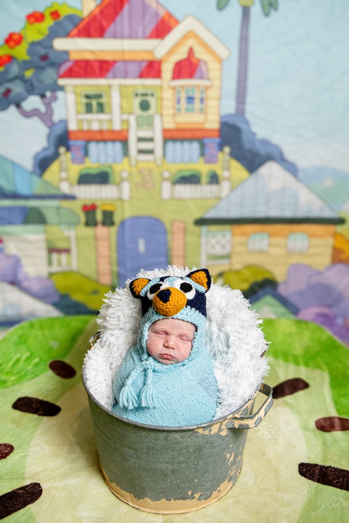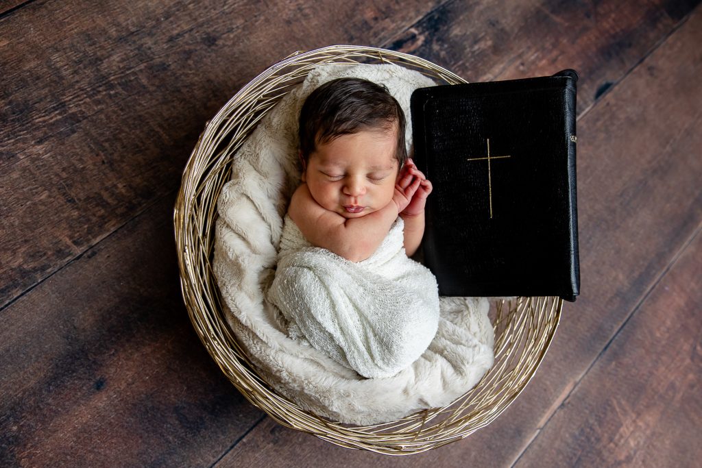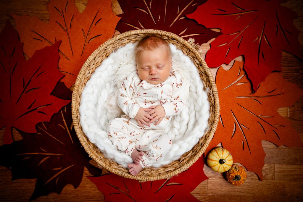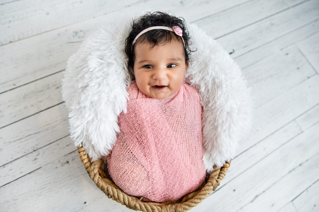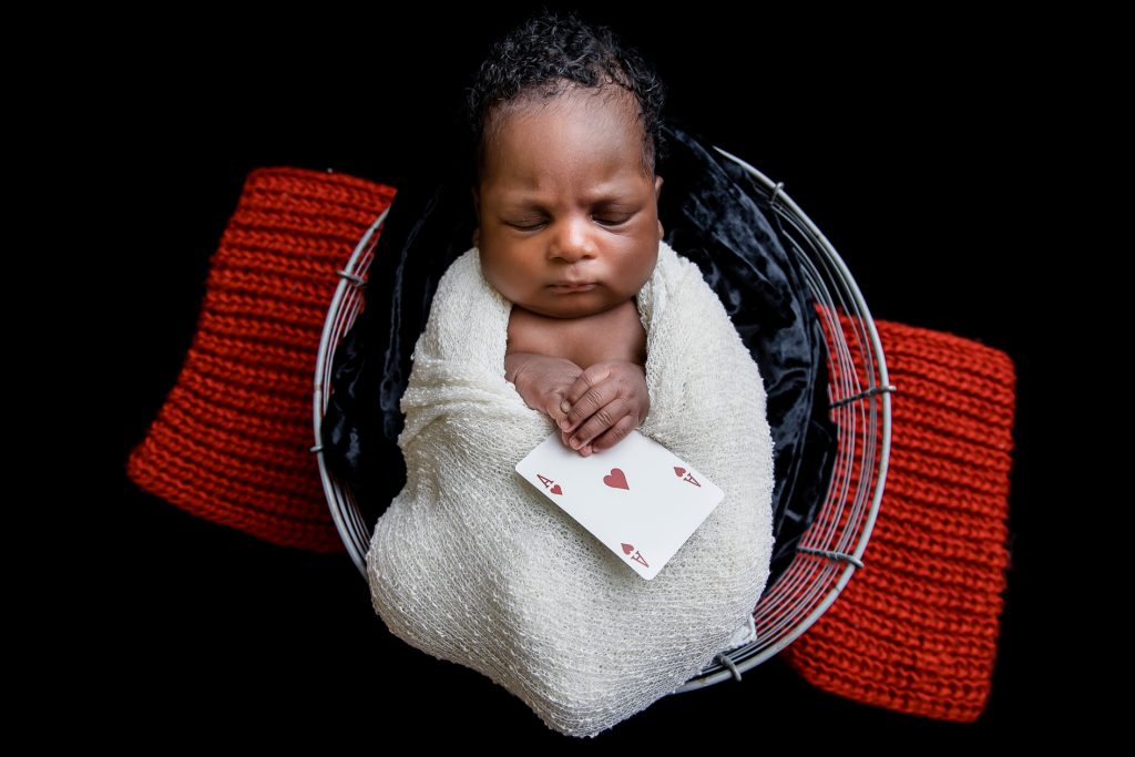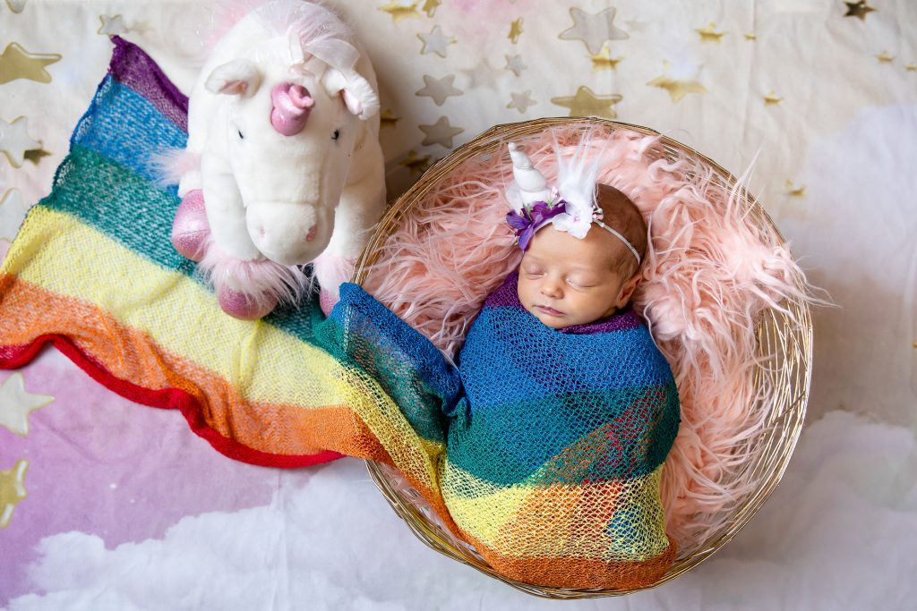 Most newborn sessions are captured at my studio with various backgrounds and props. I have many outfits/wraps and a variety of items for incorporating hobbies etc.