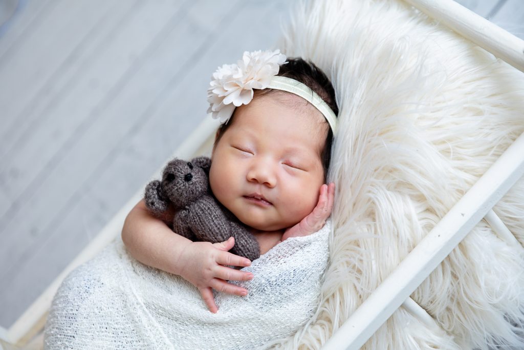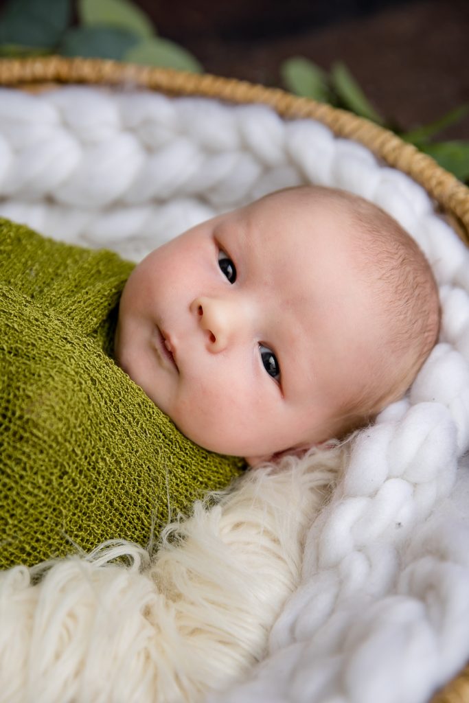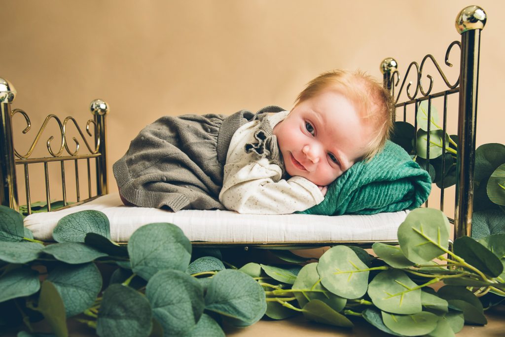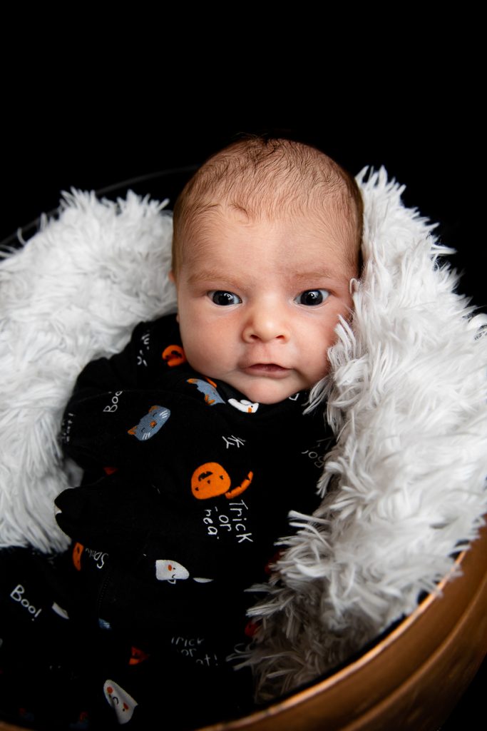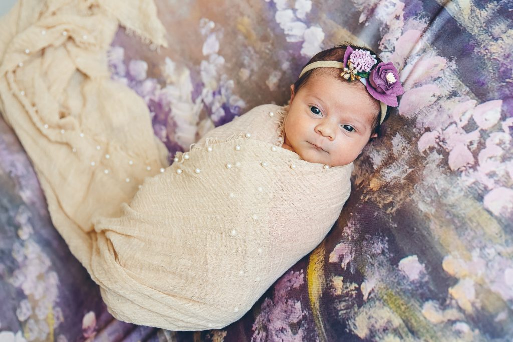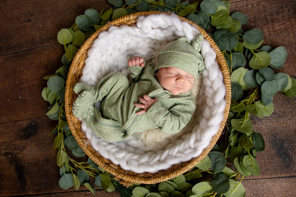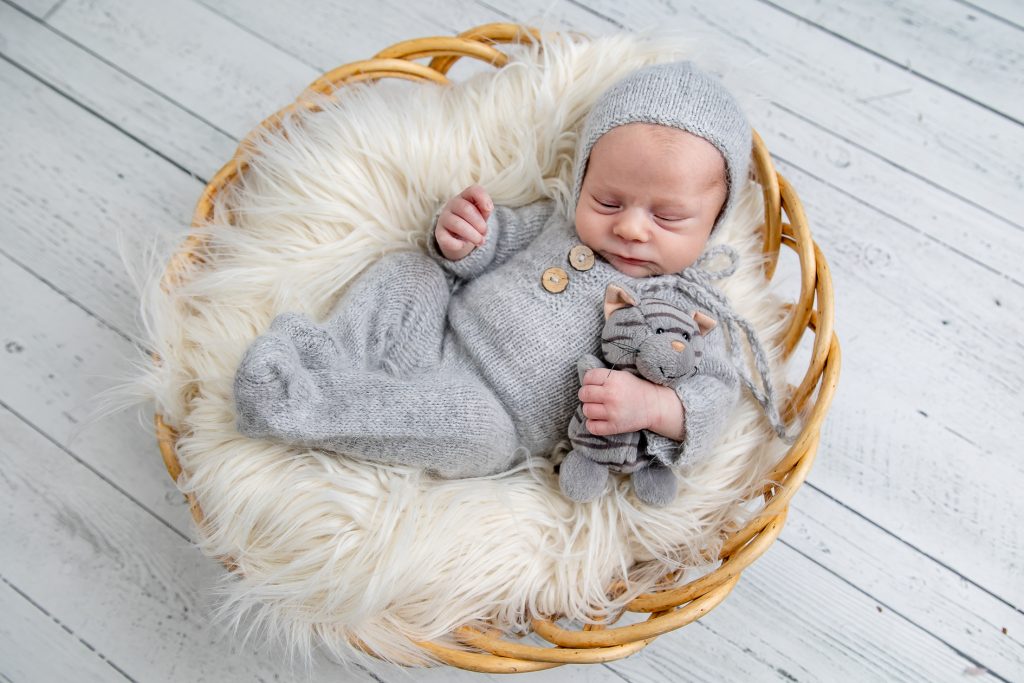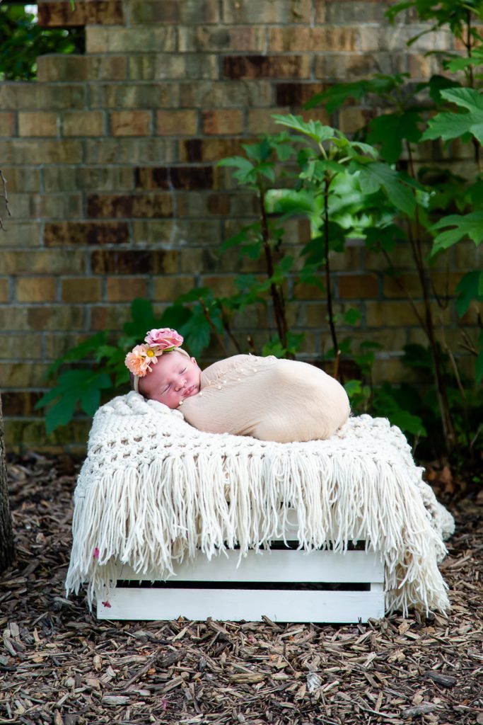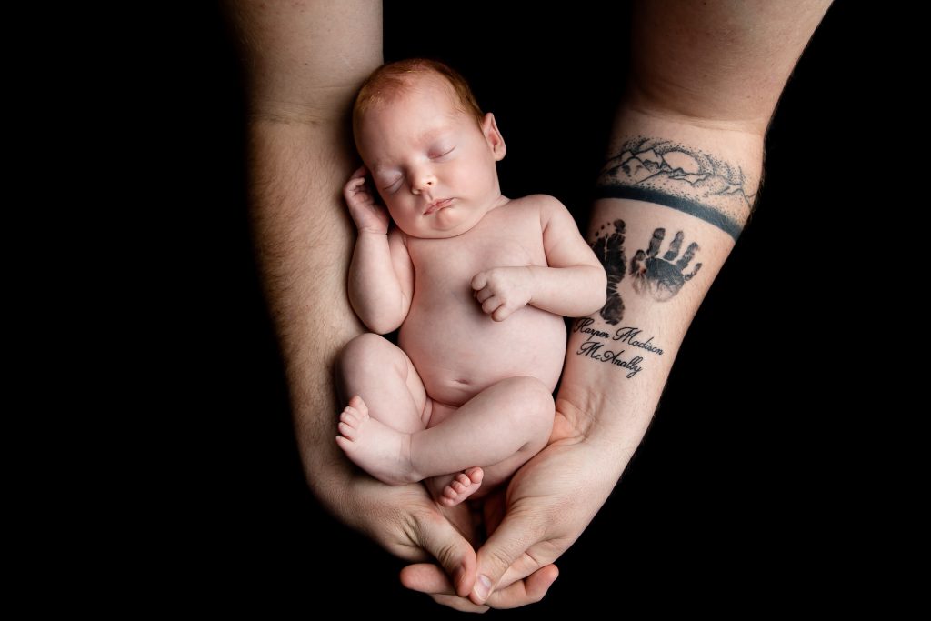 Most newborn sessions are captured at my studio with various backgrounds and props. I have many outfits/wraps and a variety of items for incorporating hobbies etc.