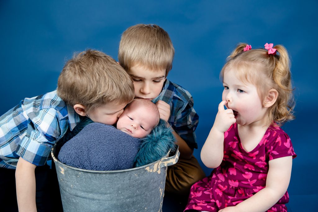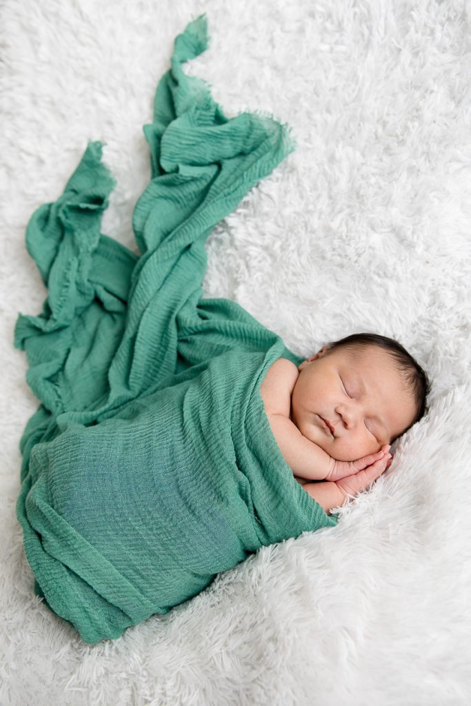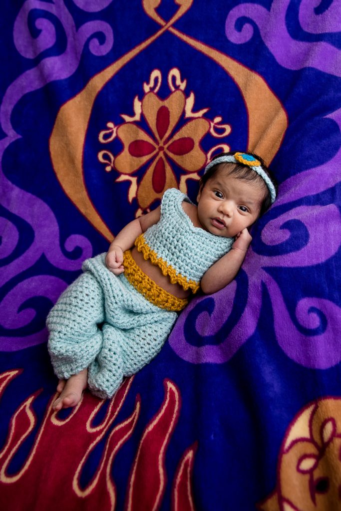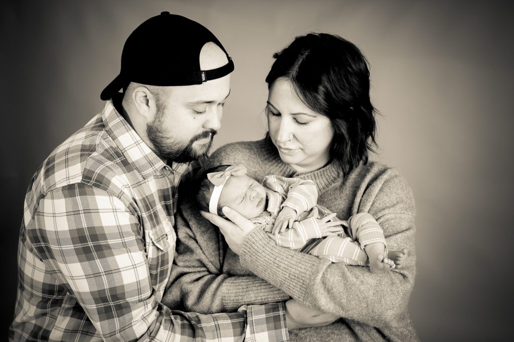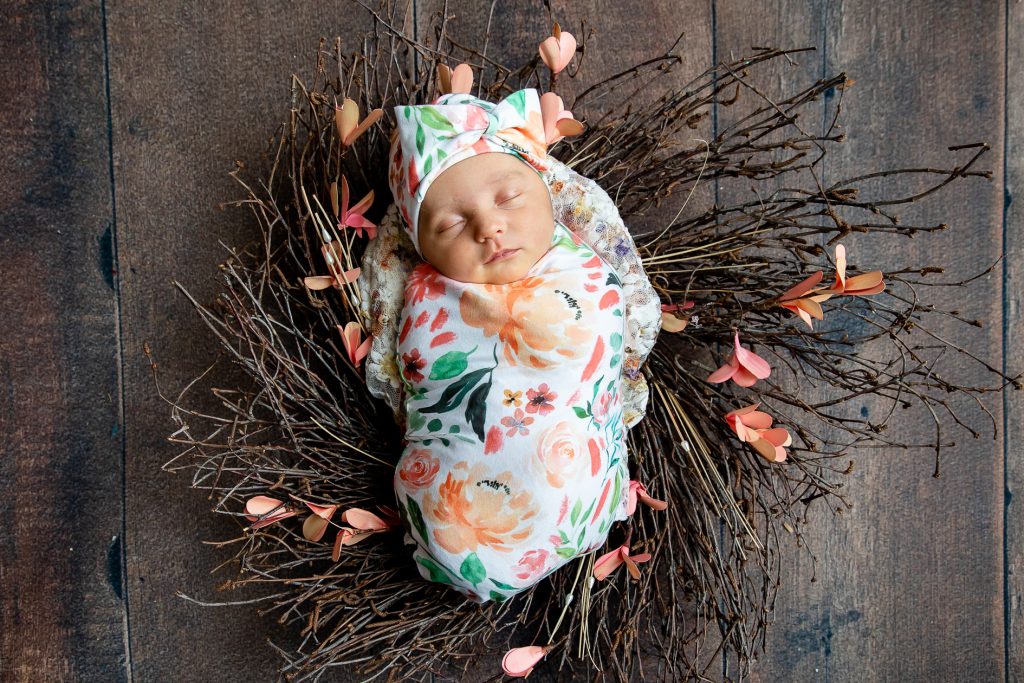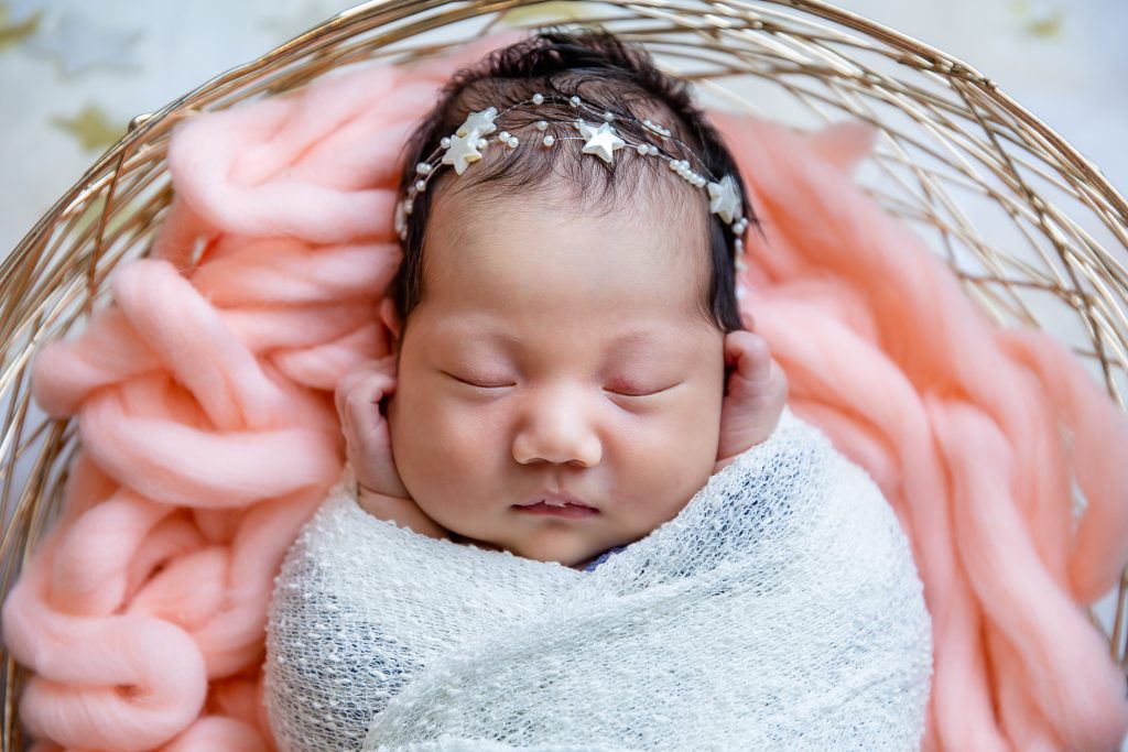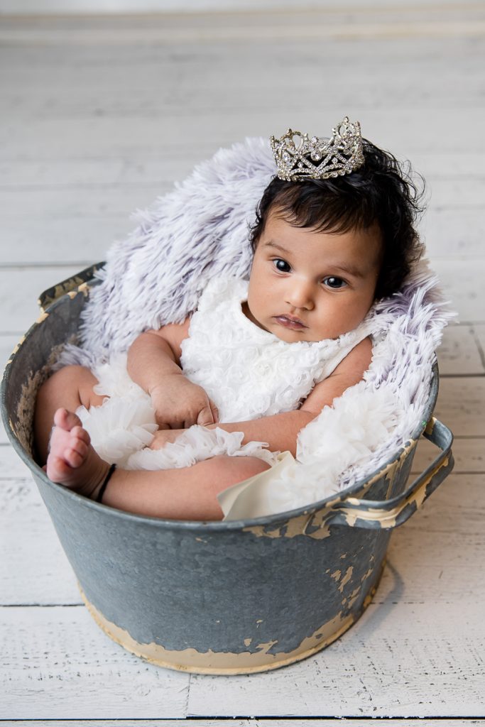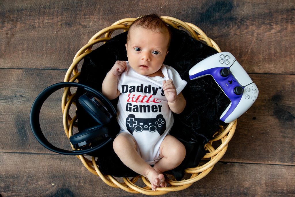 Most newborn sessions are captured at my studio with various backgrounds and props. I have many outfits/wraps and a variety of items for incorporating hobbies etc.