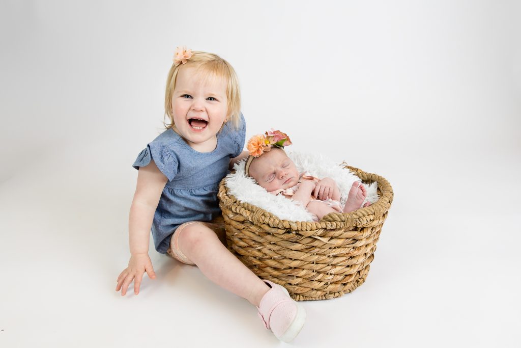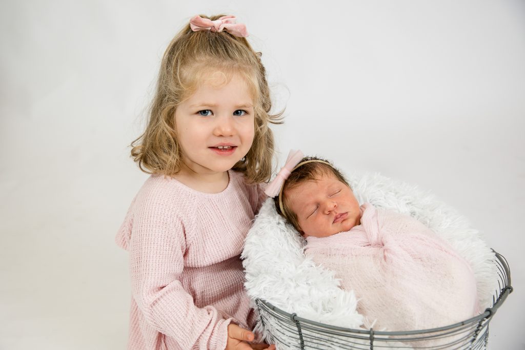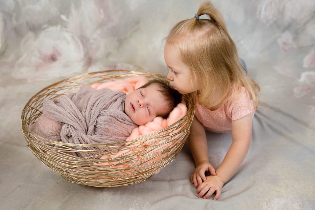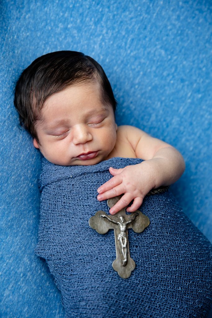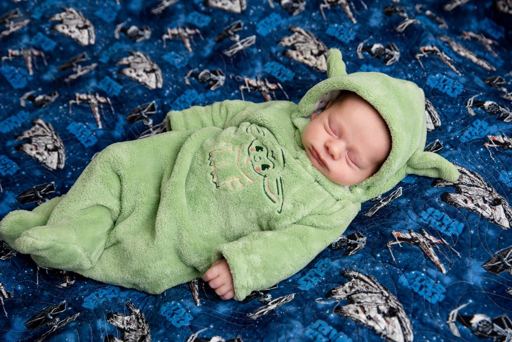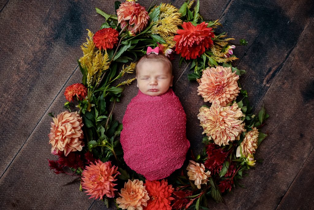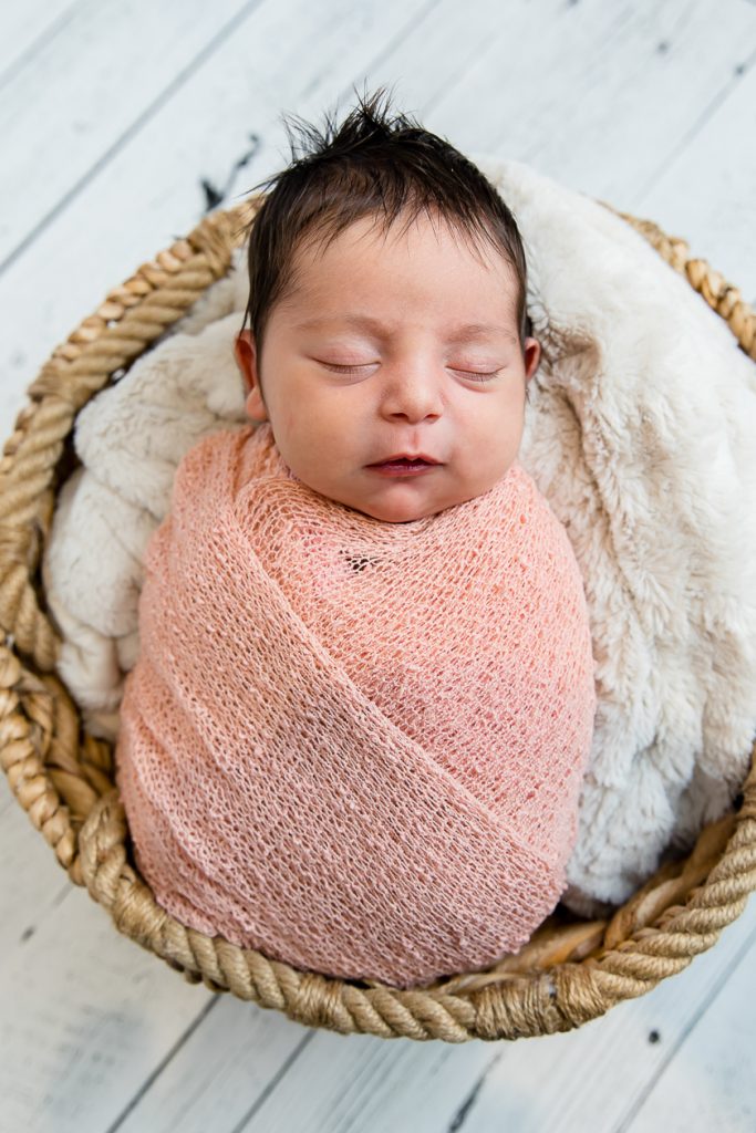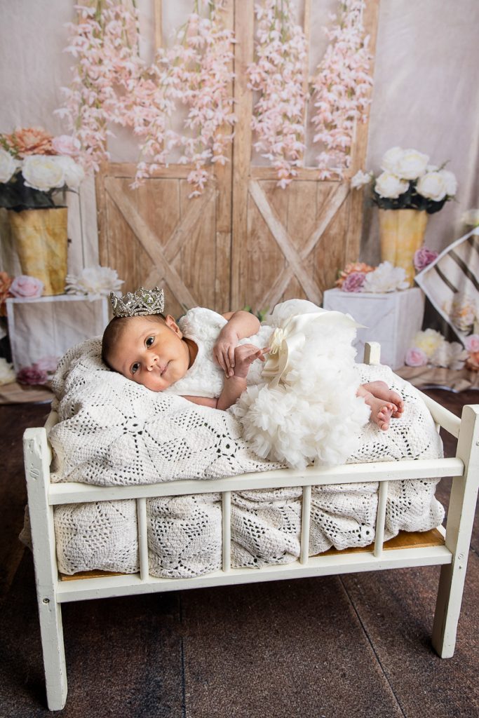 Most newborn sessions are captured at my studio with various backgrounds and props. I have many outfits/wraps and a variety of items for incorporating hobbies etc.