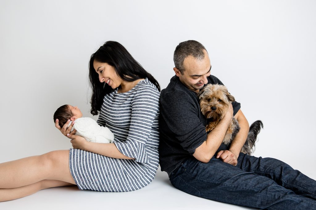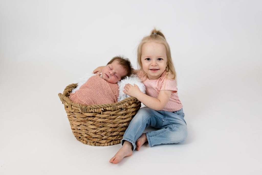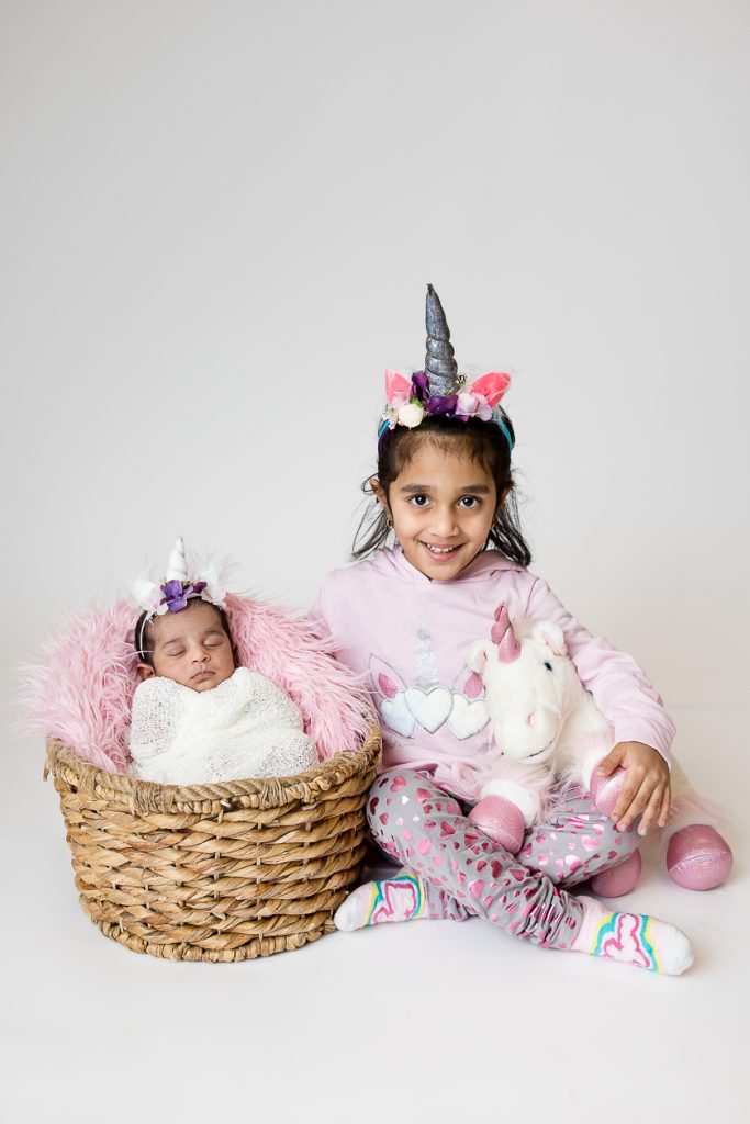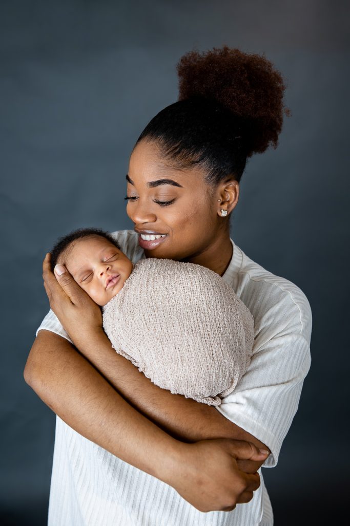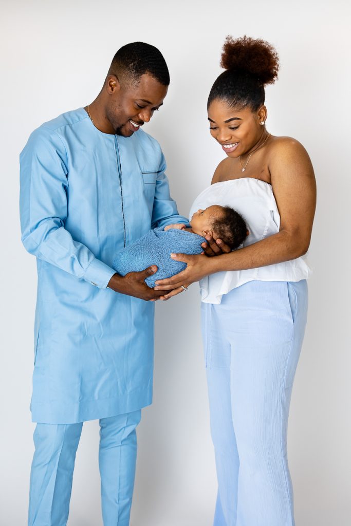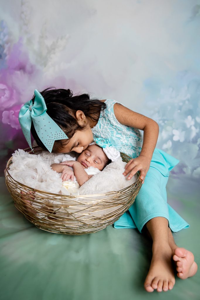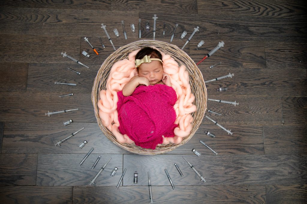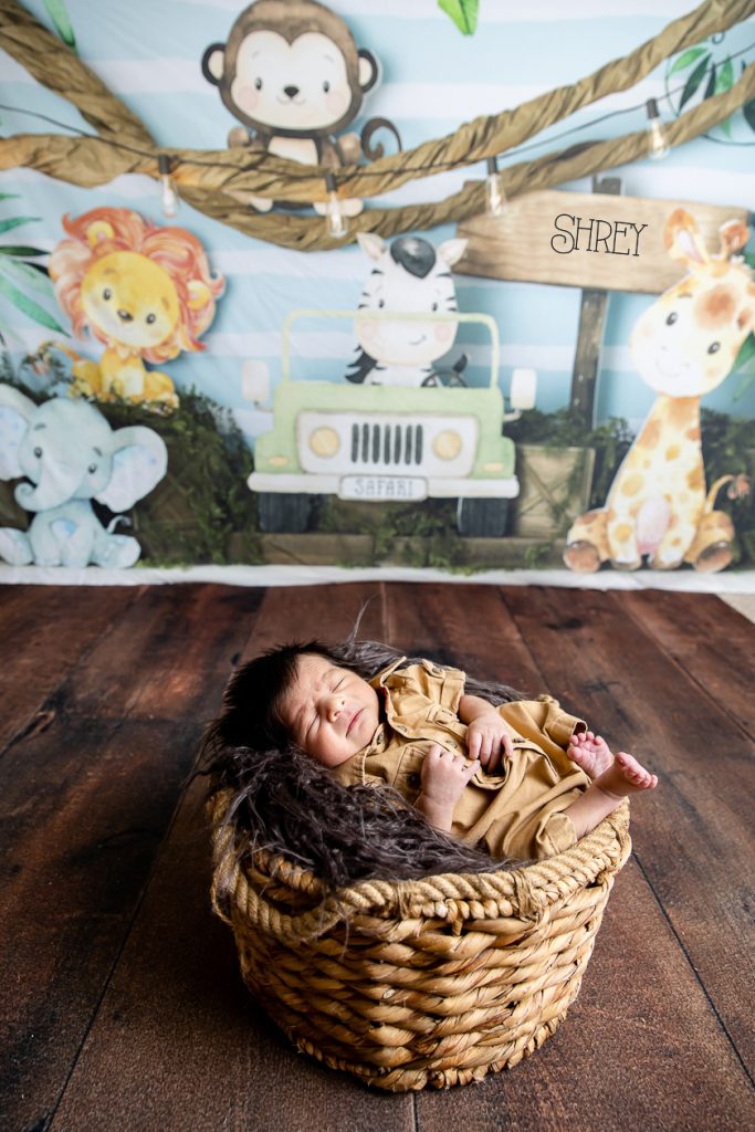 Most newborn sessions are captured at my studio with various backgrounds and props. I have many outfits/wraps and a variety of items for incorporating hobbies etc.
