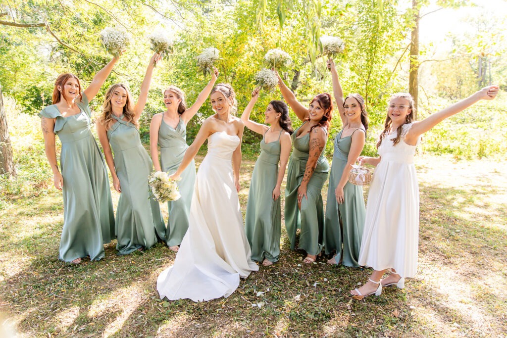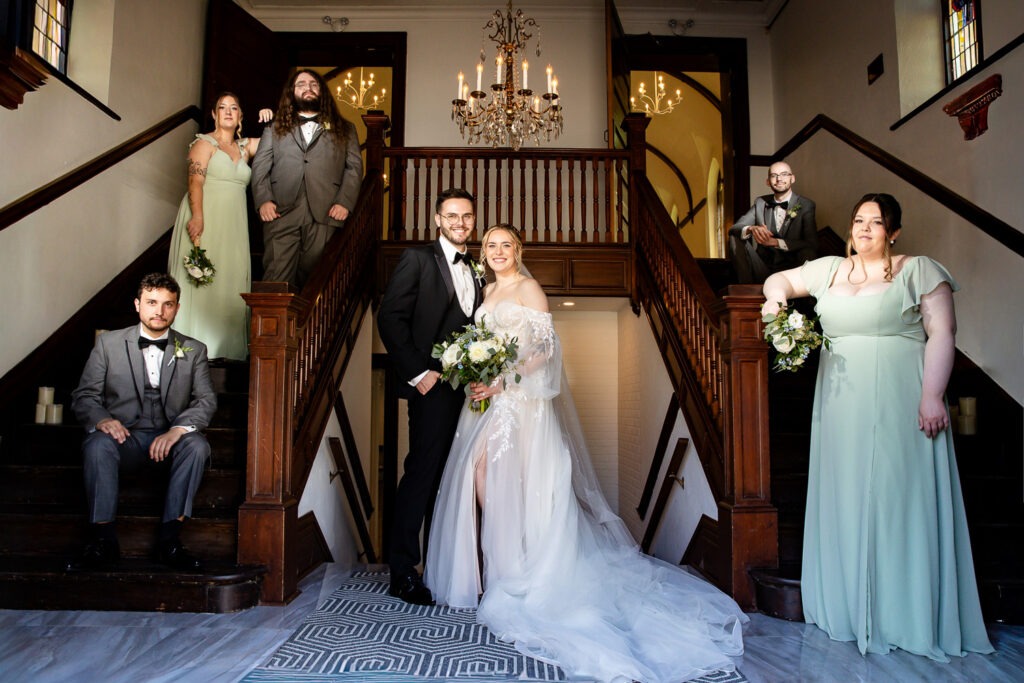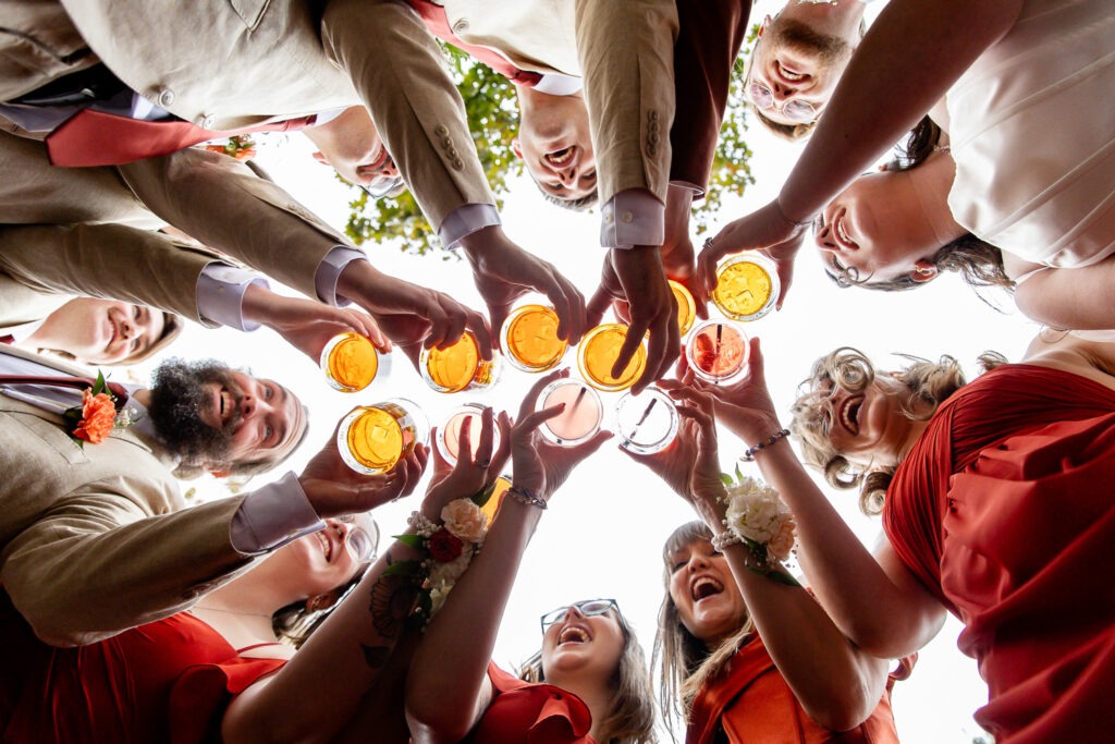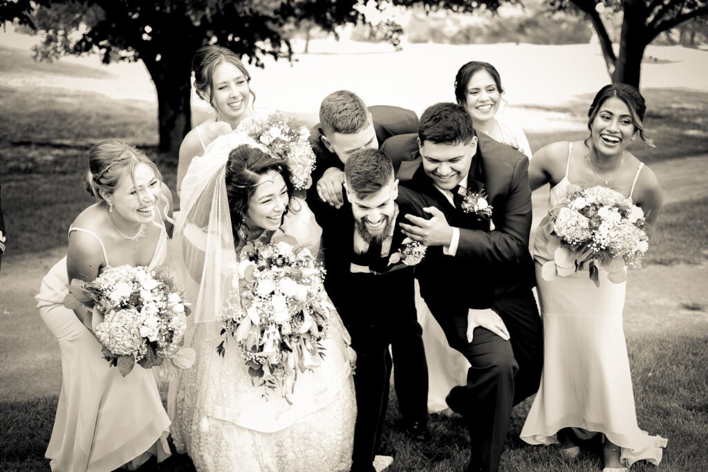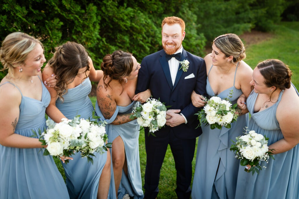 Your wedding party is made up of the people closest to you — the friends and family you want beside you for some of the most important moments of your day. When it comes to wedding party photos, we always aim to capture a mix of traditional “looking at the camera” portraits, candid moments, and fun wedding party photos that show personality. We love getting creative with bridesmaids and groomsmen photo ideas so that this part of the day feels more like a fun experience and less like something keeping everyone away from cocktail hour. We also work quickly and give lots of direction so no one feels awkward in front of the camera.