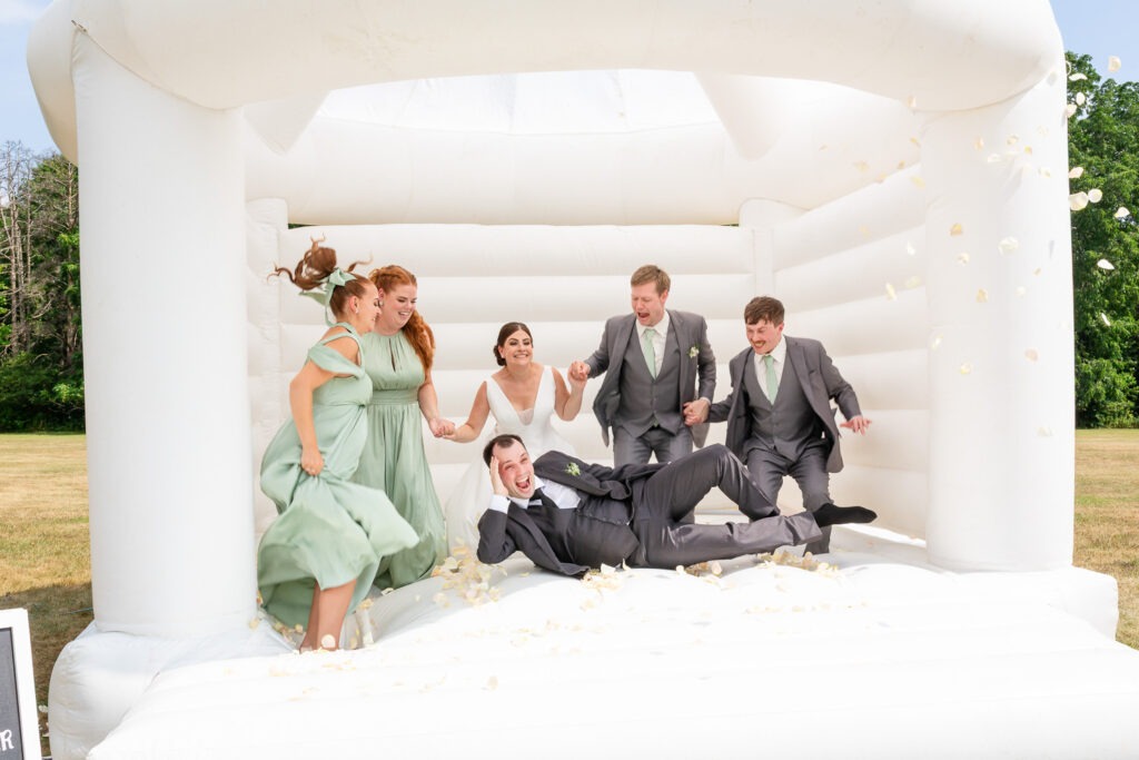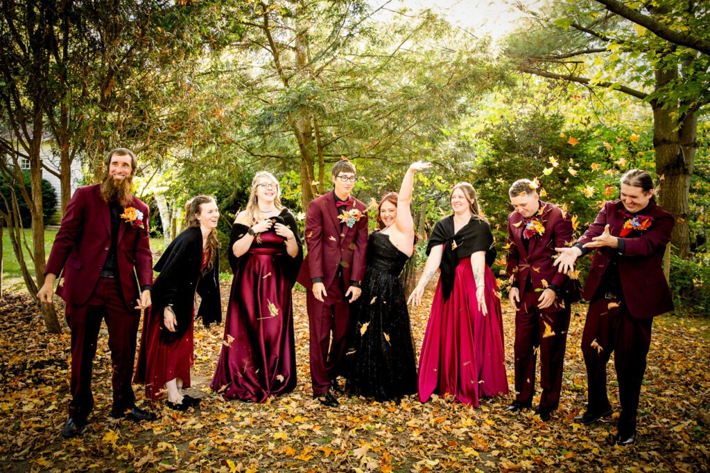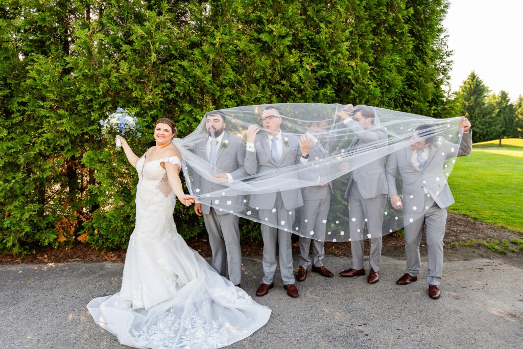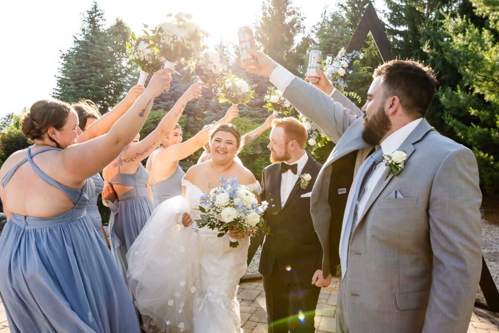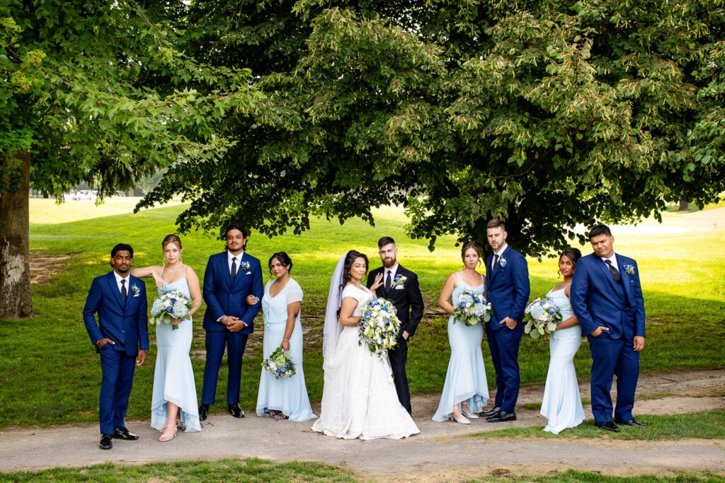 Your wedding party is made up of the people closest to you — the friends and family you want beside you for some of the most important moments of your day. When it comes to wedding party photos, we always aim to capture a mix of traditional “looking at the camera” portraits, candid moments, and fun wedding party photos that show personality. We love getting creative with bridesmaids and groomsmen photo ideas so that this part of the day feels more like a fun experience and less like something keeping everyone away from cocktail hour. We also work quickly and give lots of direction so no one feels awkward in front of the camera.