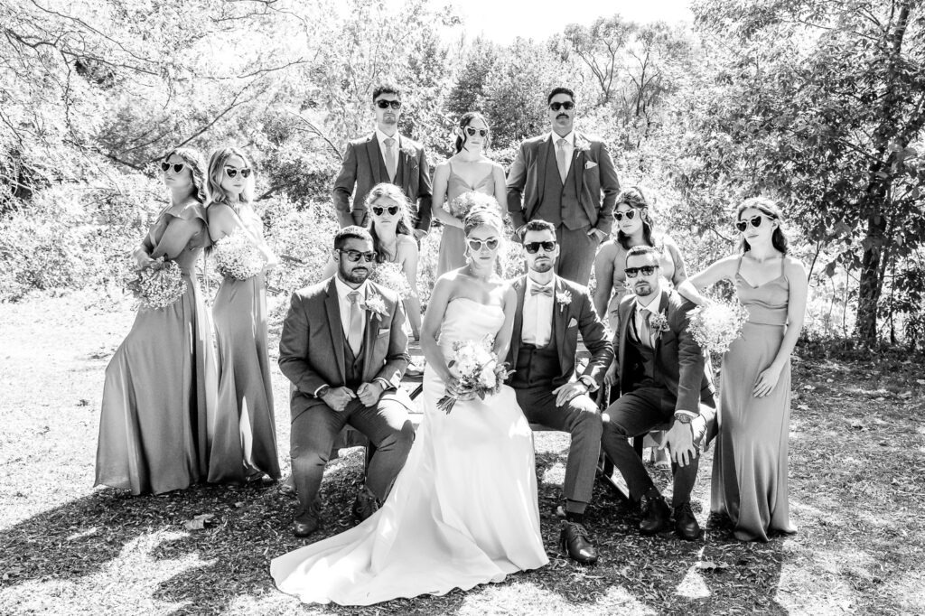It was hard to narrow these weddings down to just a few images because there were so many great bridesmaids photo ideas and groomsmen photo ideas throughout the year. These weddings took place at a variety of beautiful locations across London Ontario and Southwestern Ontario. We don’t limit the number of images we edit for our clients — we deliver all the photos that help tell the full story of the wedding day. Our editing style features punchy, true-to-life colours, and clients also receive a selection of images in different tones, including black and white, which you’ll see throughout the photos below.
