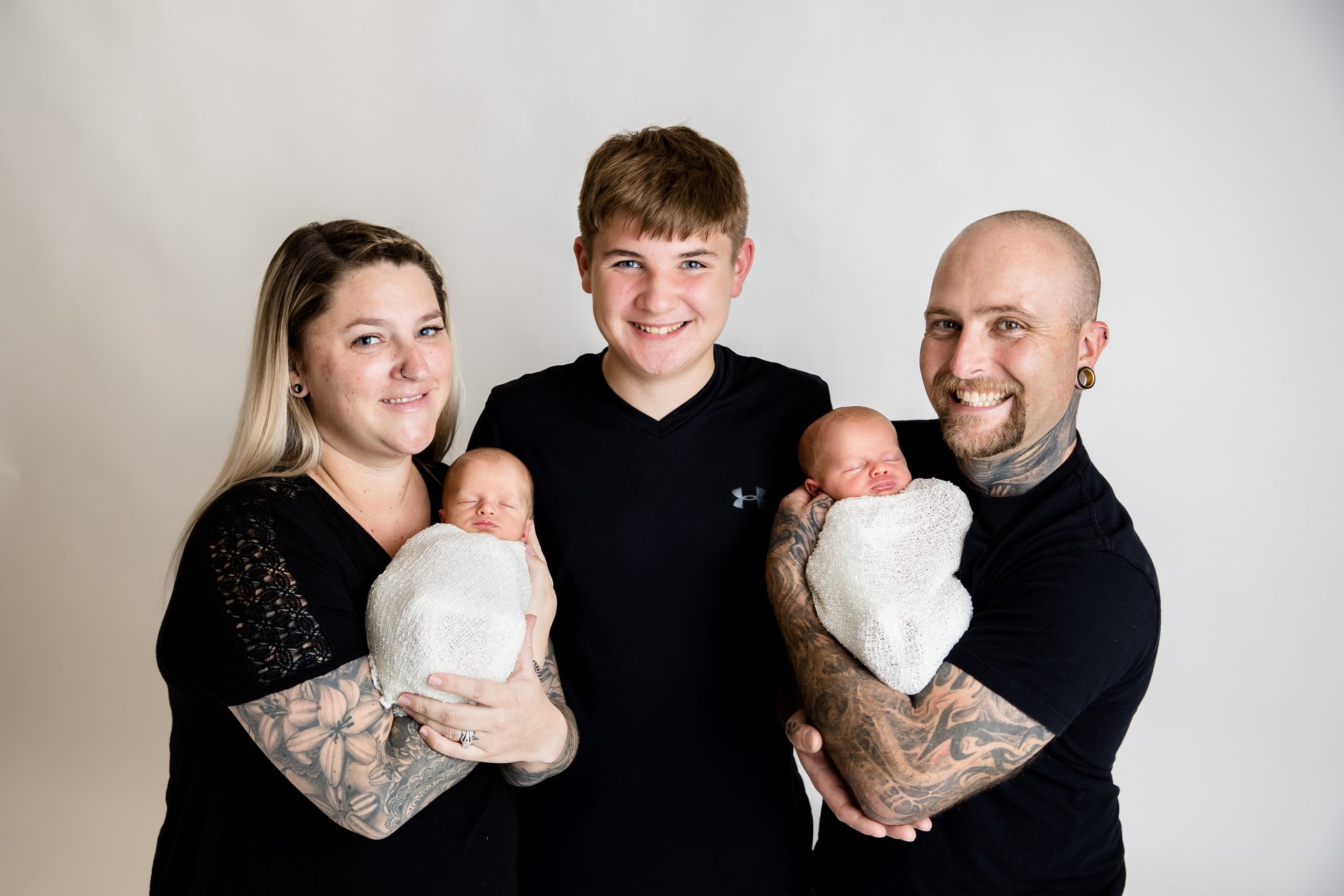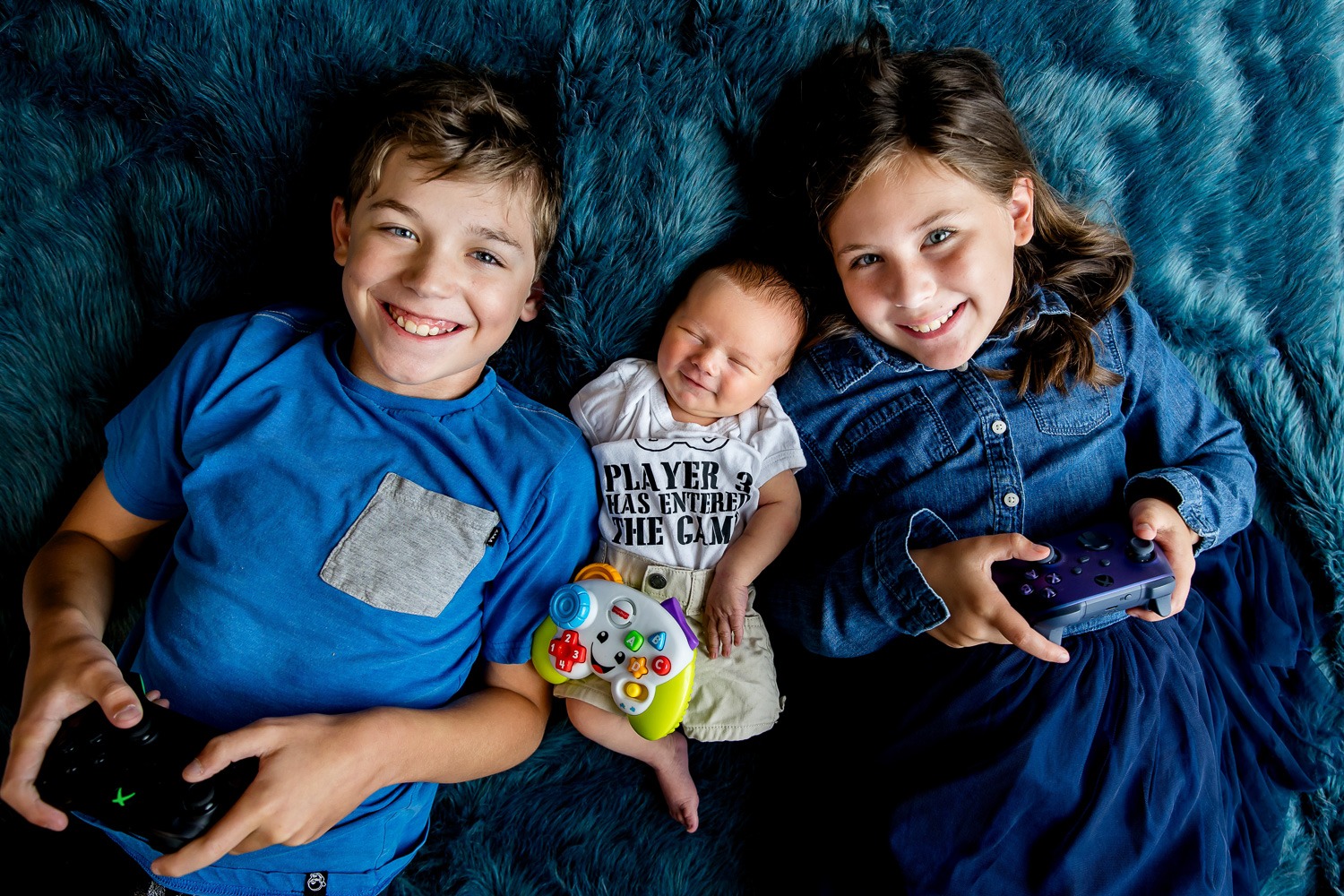 For the newborn we often use our wraps and other newborn outfits. If you would like to do some wearing regular clothing we can, and for the rest of the family keep these tips in mind- Clothing will depend on season but in general if you are doing family photos during the newborn session we recommend not to be too matchy-matchy but certainly colour co-ordinate and be aware of not wearing many or clashing patterns. Strong, rich colours photograph better than pastels. We recommend not to wear any slogan tshirts or any really ‘fad’ fashion as it will age your portraits and most of all wear something that fits well and you are comfortable in. Unless incorporating a shot where you specifically want to see shoes, you will generally not see them on the adults, and shoes/socks/booties tend to be bulky on newborns we don’t usually photograph them wearing them.